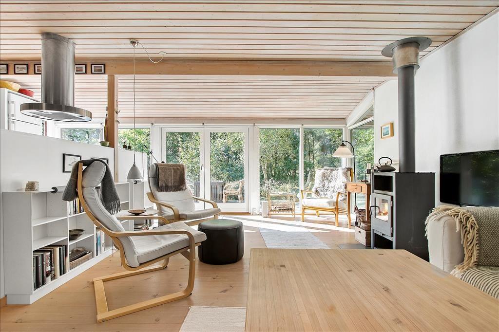 Beim Betreten des Hauses werden Sie von einer hellen und großzügigen Atmosphäre empfangen. Große Fensterfronten lassen das Tageslicht hereinströmen und schaffen das Gefühl, dass die Natur draußen Teil des Hauses wird. Das Wohnzimmer bietet bequeme Möbel, perfekt zum Entspannen mit einem Buch oder für gemütliche Abende vor dem Fernseher. Die offene Küche, die in das Wohnzimmer integriert ist, lädt zu gemeinsamen Mahlzeiten und geselligen Kochabenden ein. Die einladenden Schlafzimmer sorgen für erholsamen Schlaf, sodass Sie frisch und ausgeruht in den Tag starten können.