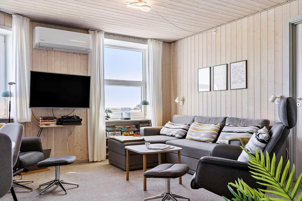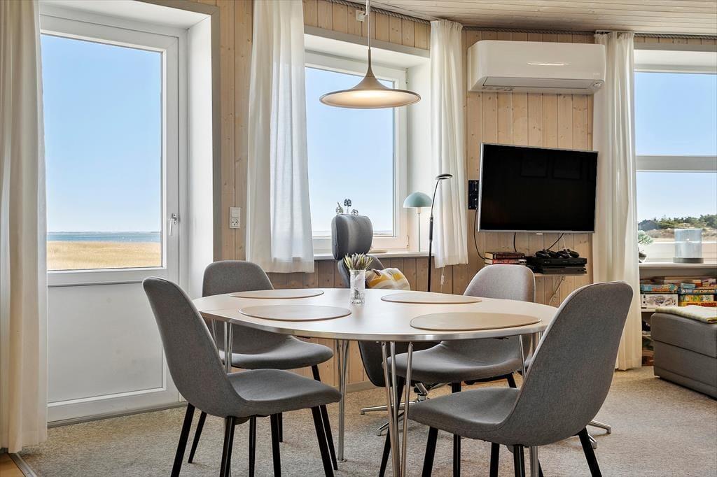 Diese wunderschöne Ferienwohnung am Sønder Klitvej 172, Wohnung 5, bietet einen fantastischen Blick auf den ruhigen Ringkøbing Fjord. Mit ihrer zentralen Lage an einer den schmalsten Stellen auf der Landzunge Holmsland Klit seid ihr sowohl nahe des Fjordes als auch der beeindruckenden Nordseeküste. Und hier bieten sich zahlreiche Möglichkeiten für einen aktiven und erholsamen Urlaub. Die Ferienwohnung vereint Komfort und Gemütlichkeit und ist ideal für Familien oder Freunde, die ihren Urlaub in naturschöner Umgebung verbringen möchten.