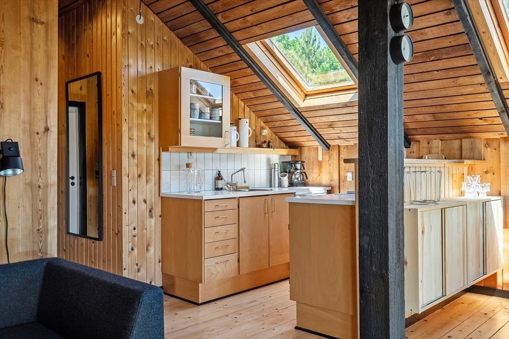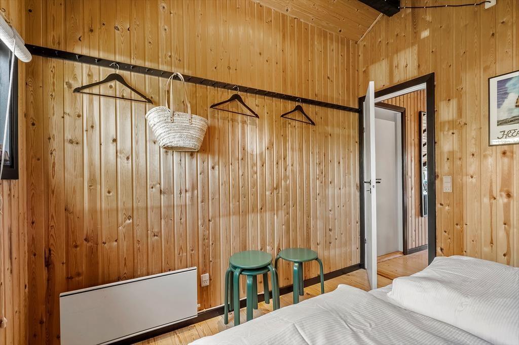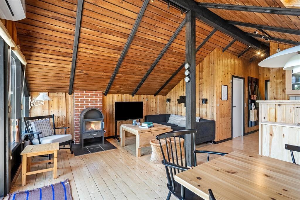 Du spürst sofort, dass hier über Details nachgedacht ist, denn das Haus wurde mit Hinblick auf seinen schlichten Ausdruck und die originalen Besonderheiten aktualisiert. Das rohe, warme Holz, die klaren Linien und großen Fenster lassen die umliegende Natur hereinströmen. Freu dich auch auf den hellen Aufenthaltsraum mit hohen Decken und Holzofen, wo viele gemütliche Augenblicke in der offenen Küche mit Essbereich und angrenzendem Wohnzimmer eine Garantie seien werden. Die Schlafzimmer sind mit bequemen Betten eingerichtet und das kleine Einzelzimmer hat einen direkten Zugang zu der ungestörten Westterrasse.Ja, es ist ohne Zweifel ein Ort, der zu slow living, Gemütlichkeit und Spielabenden vor dem Kamin einlädt.