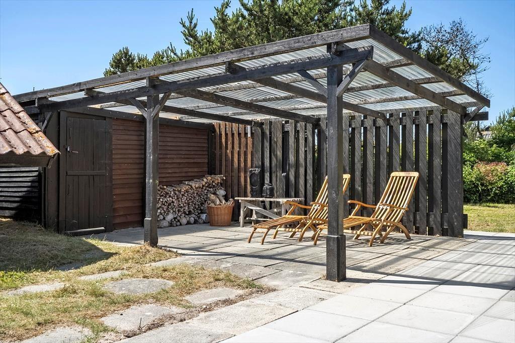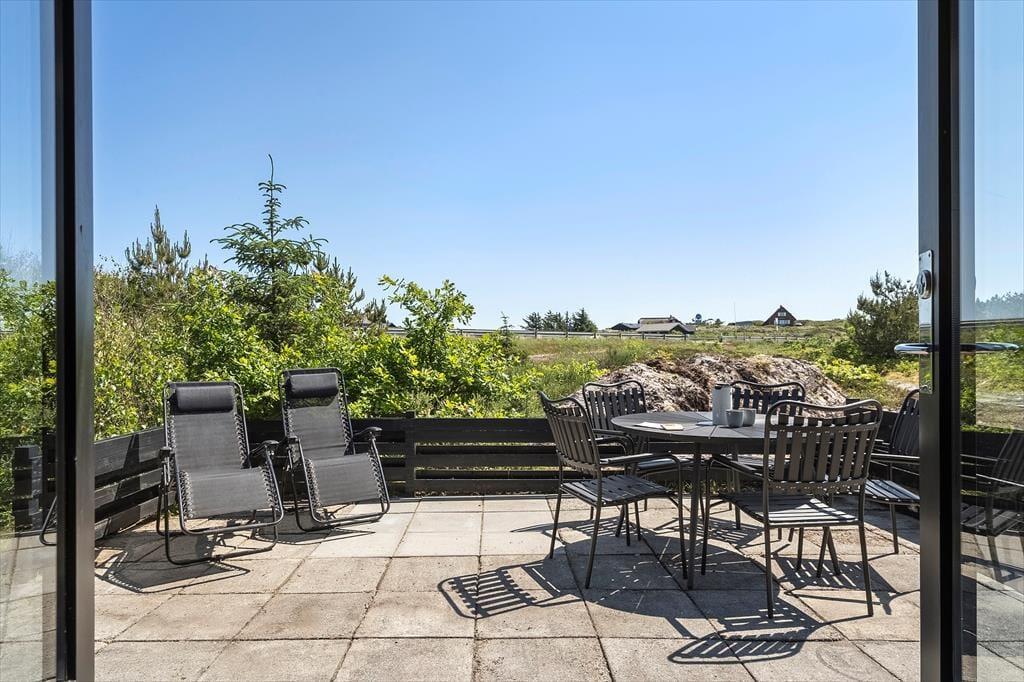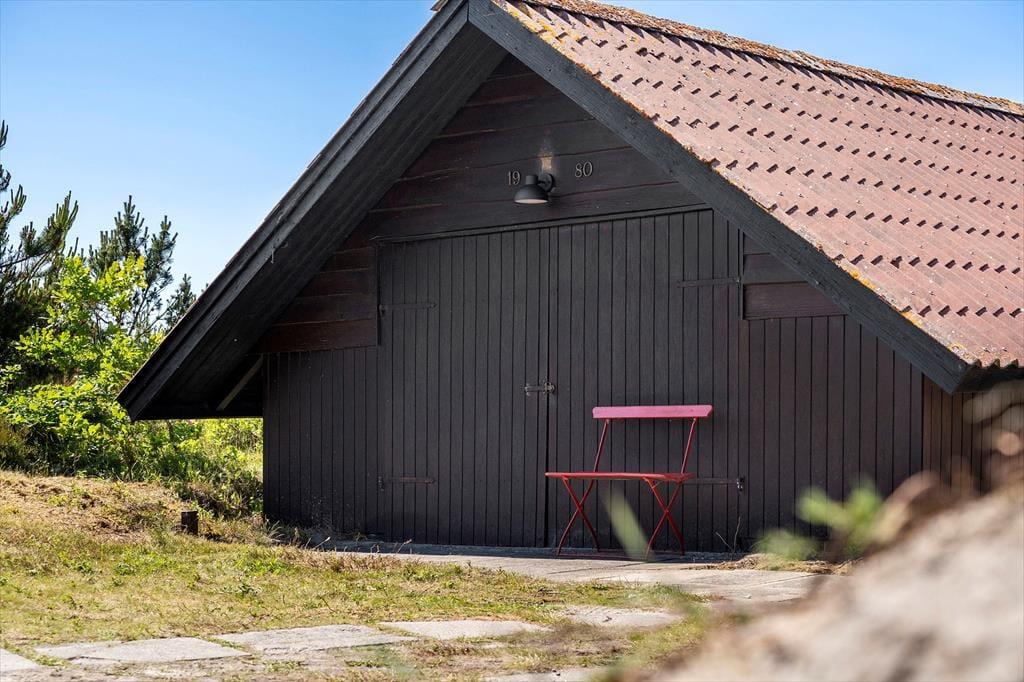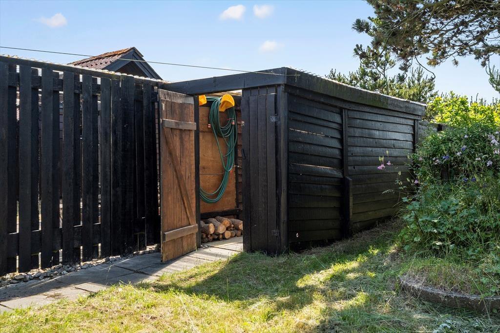 Von der nach Osten ausgerichteten Terrasse des Hauses führt ein Weg zur Anhöhe des Grundstücks mit einer kleinen Granitbank. Ein herrlicher Platz, um morgens die Sonne über dem Ringkøbing Fjord und Tipperne aufgehen zu sehen. Hier spürst du wirklich die echte, ursprüngliche Natur und die offenen Weiten. Das Haus hat vier Terrassen, eine Sektion davon ist überdacht, sodass du immer ein sonniges und windgeschütztes Plätzchen findest. Zum Haus gehört ein Schuppen, in dem Fahrräder und andere Ausrüstung verschlossen verwahrt werden können und: die, ebenfalls in einem verschließbaren Raum liegende, gasbeheizten Außendusche, ermöglicht dir praktisch das Abgewaschen von Salz und Sand.