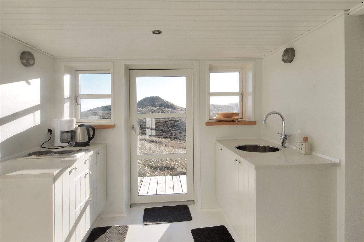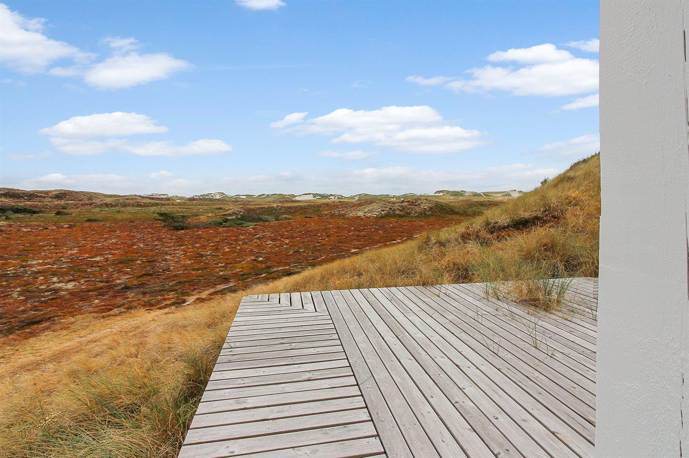 Die Ferienunterkunft liegt auf einem 327000 m² großen Dünengrundstück. Die Entfernung zum Meer beträgt 750 m. Die Entfernung zum Fjord beträgt 800 m. Die nächste Einkaufsmöglichkeit liegt 1500 m entfernt. Es steht ein 20 m² Terrassenareal zur Verfügung.