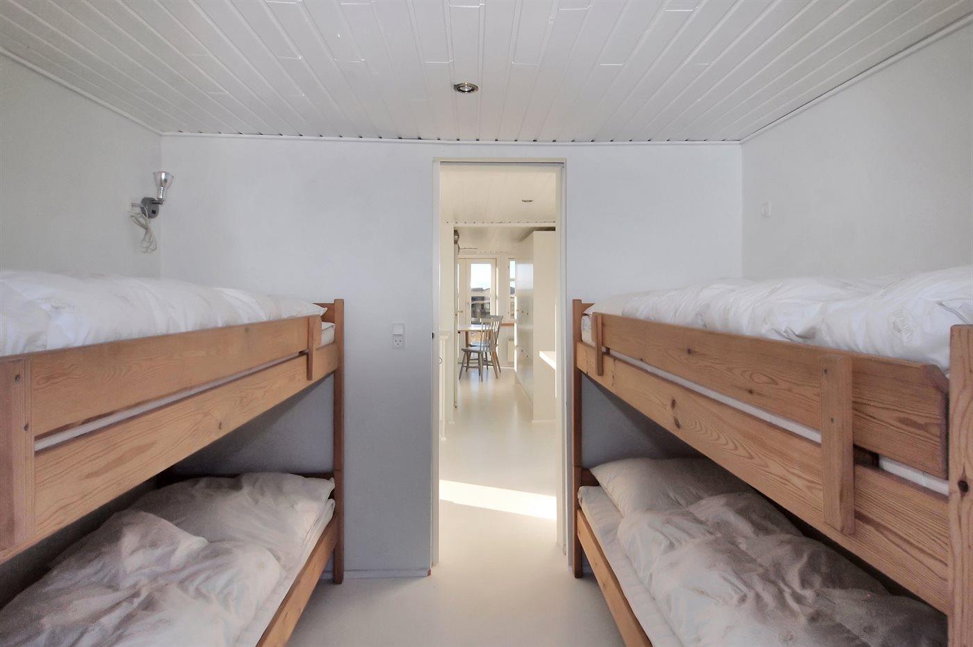 Die Schlafplätze verteilen sich auf 3 Schlafräume. 2 Schlafplätze in einem Doppelbett.1 Schlafplatz in einem Einzelbett. 2 Schlafplätze in einem Etagenbett.