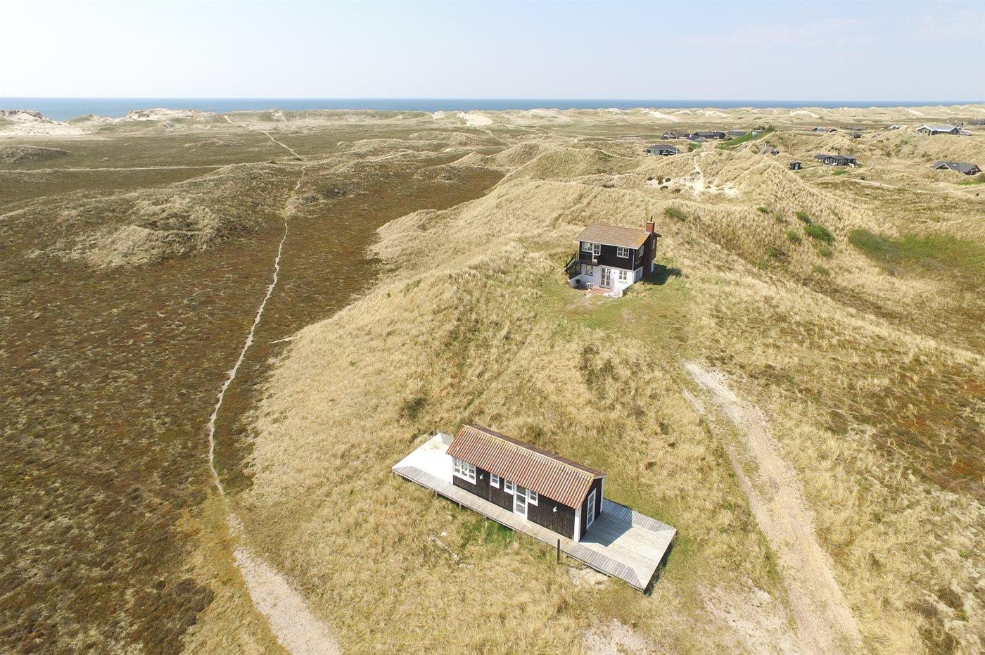 Auf einem großen Dünengrundstück in ruhiger Umgebung und mit Panoramaaussicht auf den Ringkøbing Fjord, sowohl vom Haus als auch vom Grundstück, liegt dieses schöne Ferienhaus in 2 Etagen gebaut. ÜBRIGENS: AUF DEM GRUNDSTÜCK LIEGT EIN GÄSTEHAUS, DAS MIT 4 KOJENPLÄTZE, KLEINEM BADEZIMMER, KÜCHE UND AUFENTHALTSRAUM EINGERICHTET IST. DAS GÄSTEHAUS KANN GEGEN ZAHLUNG VON EINEM MEHRPREIS GEMIETET WERDEN – FÜR WEITERE INFORMATIONEN WENDEN SIE SICH BITTE AN DAS SERVICEBÜRO IN BJERREGAARD.