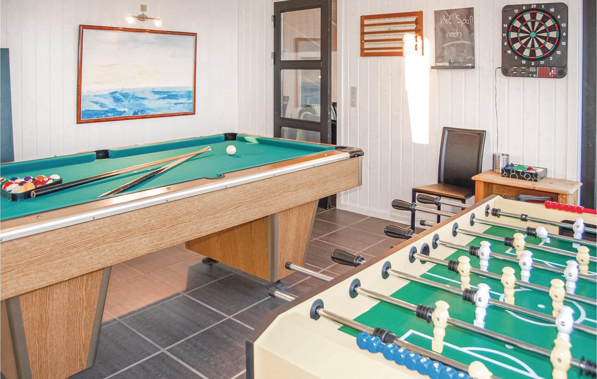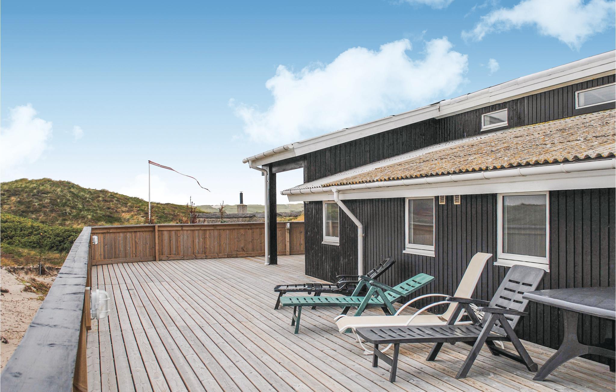 Hier erwartet Sie ein Qualitätshaus in einer der schönsten Gegenden der Landschaft Holmsland Klit. Genießen Sie hier den herrlichen Blick auf den Ringkøbing Fjord. Die schöne Einrichtung umfasst gute Möbel und einen erfrischenden Swimmingpool. Der Whirlpool wird Sie mit Massage verwöhnen und im Aktivitätsraum sind PlayStation, Darts, Tischtennis und Billard untergebracht. Wettkämpfem mit der Familie stehen hier auf der Tagesordnung. Die Terrassen rund um das Haus bieten Windschutz und schöne Stunden in der Sonne. Hier macht das abendliche Grillen ebenso viel Spaß. Das Ferienhaus liegt in einer reizvollen Dünenlandschaft und nur 650 m vom schönen Nordseestrand entfernt. Wenn Sie gerne etwas unternehmen, dann liegt das Haus dafür ebenso sehr zentral. Der Strand breitet sich hier über mehrere Kilometer an der Küste, es gibt Sand und Meer bis an den Horizont.