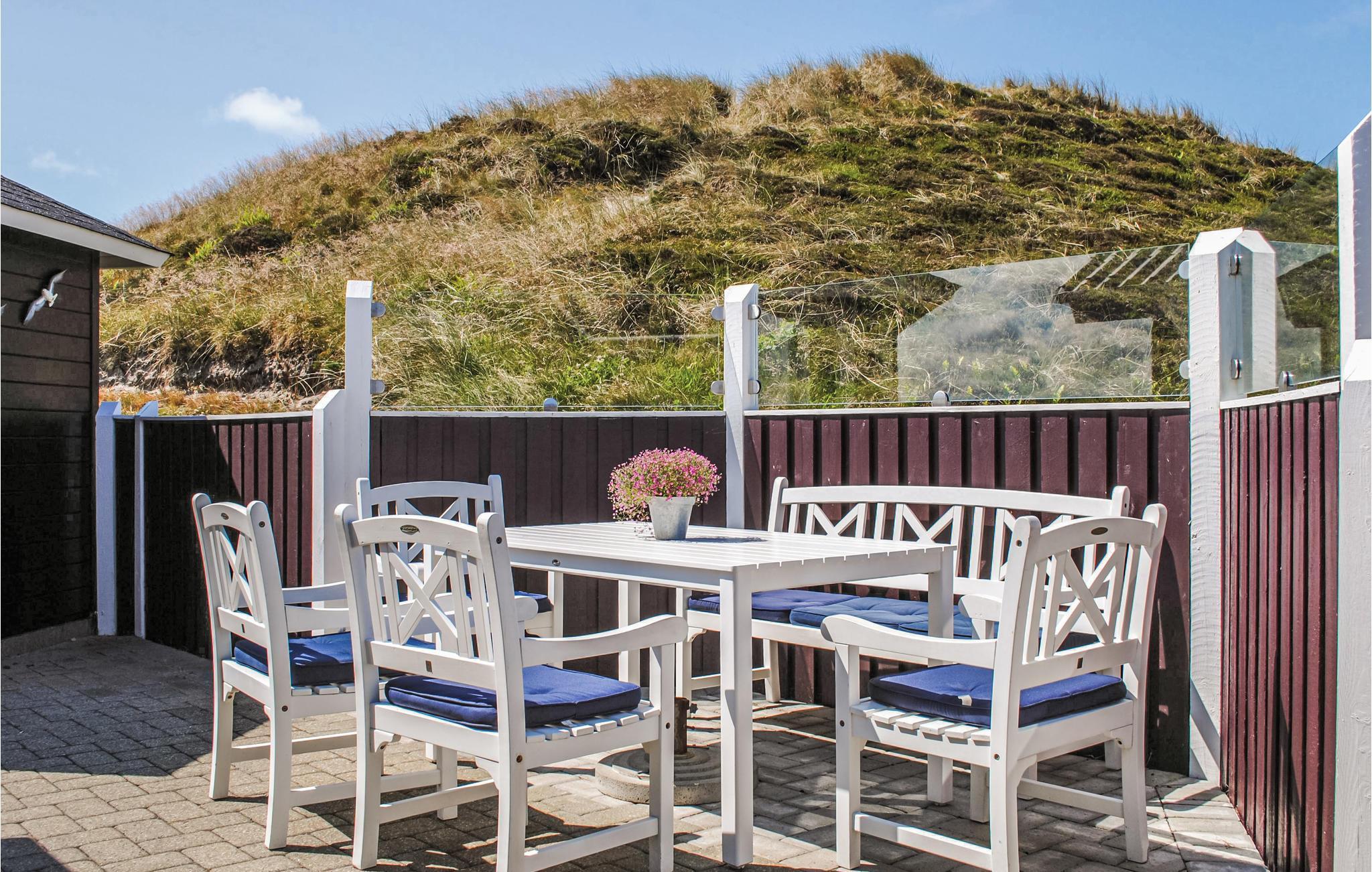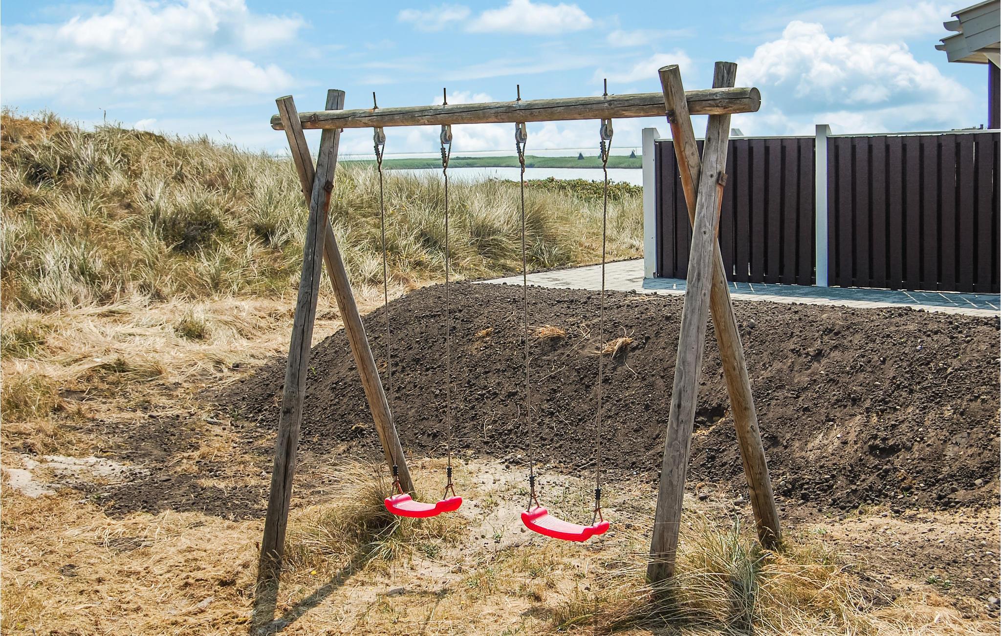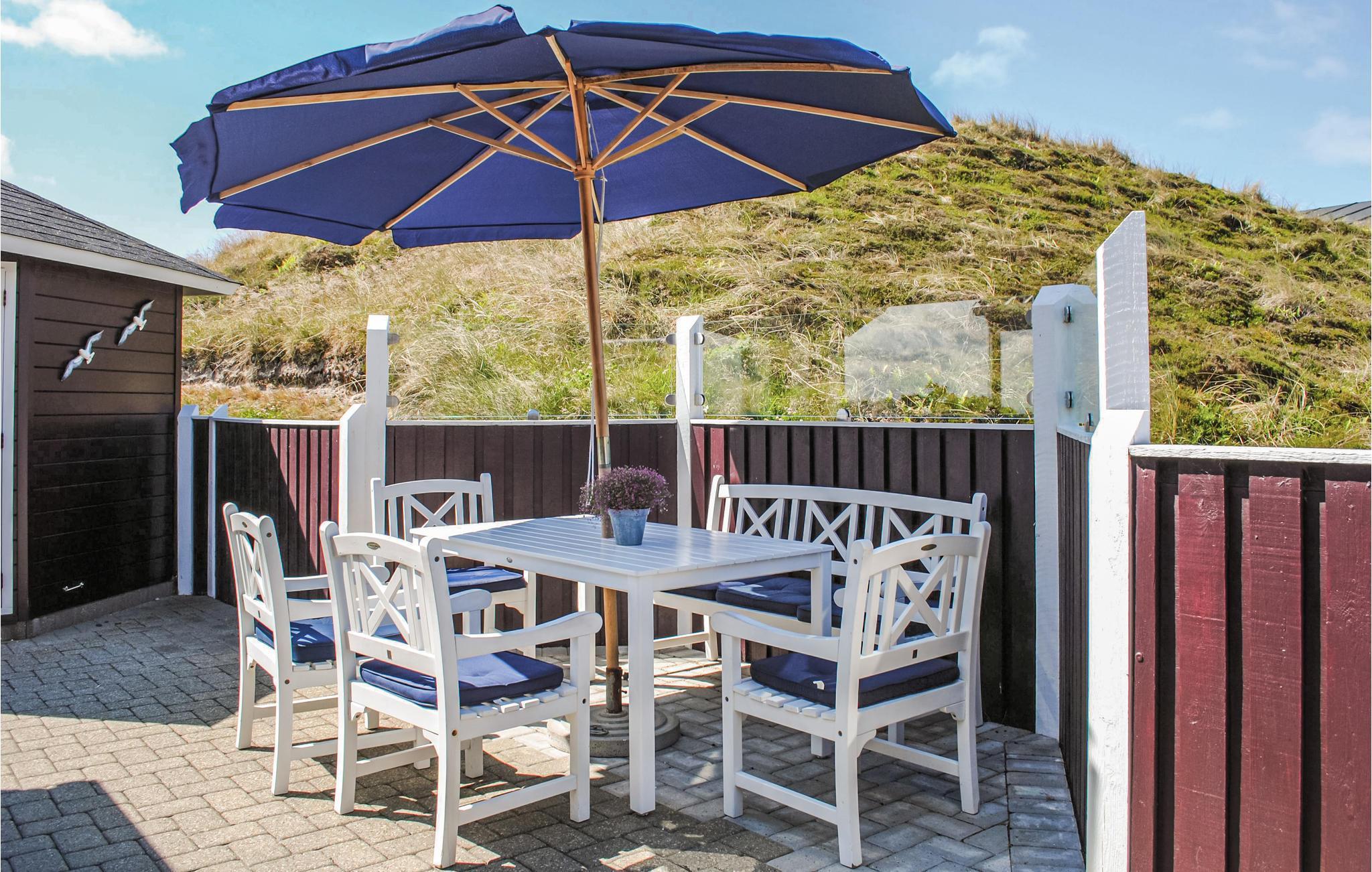 Dieses schöne und versetzt gebaute Ferienhaus ist hoch gelegen in den Dünen. Vom Wohnzimmer und von der Süd- bzw. Ostterrasse aus haben Sie Blick auf den Fjord von Ringkøbing nur 100 Meter vom Haus. Die gut ausgestattete Küche ist modern und stilvoll eingerichtet. Das Haus teilweise mit Fliesenfußböden, teilweise mit Teppichen ausgestattet, daher praktisch und behaglich eingerichtet zugleich. Planschen Sie im 17 Quadratmeter großen Swimmingpool oder entspannen Sie im Whirlpool für zwei Personen. Wenn Sie einen Sauna machen, haben Sie zugleich Aussicht auf den Fjord. Von den Süd- und Ost-Terrassen haben Sie ebenfalls Aussicht auf den Fjord und auf der teilweise überdachten West-Terrasse können Sie zusätzlich die Abendsonne genießen. Gute Bedingungen zum Windsurfen werden Sie hier an mehreren Strandabschnitten finden.