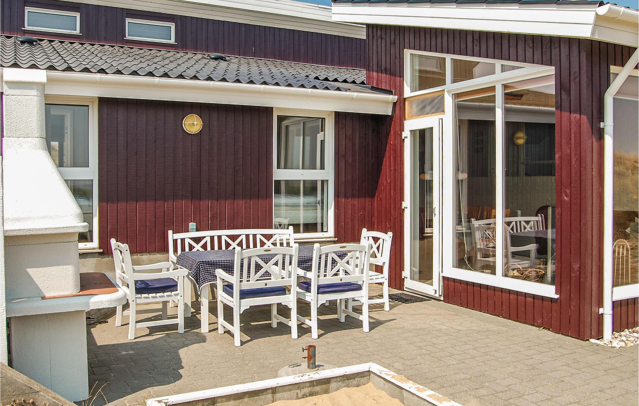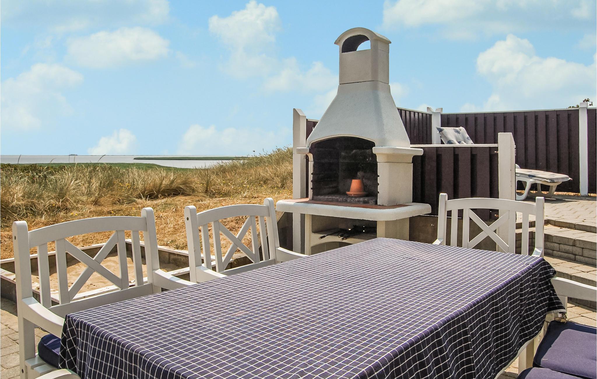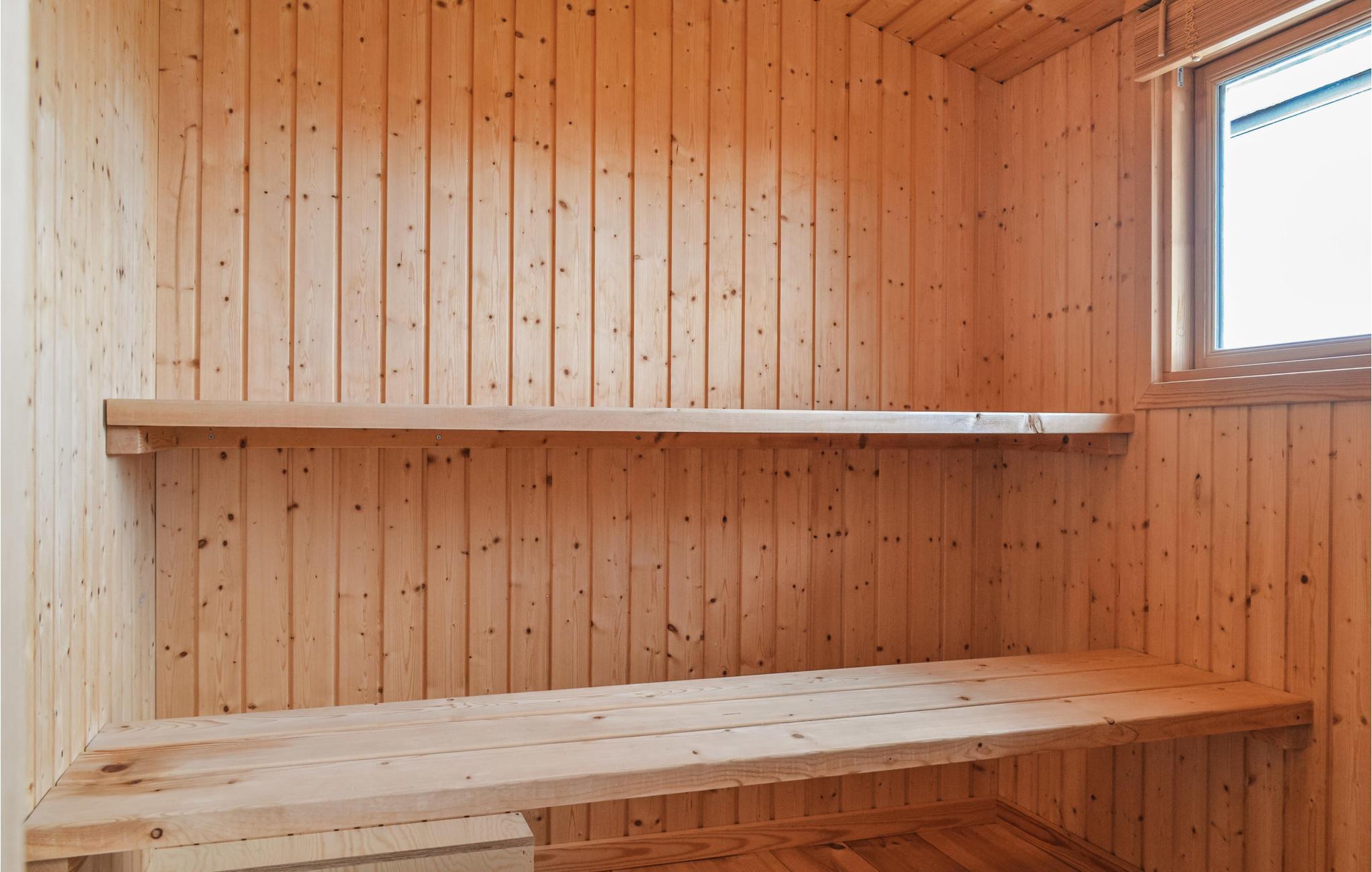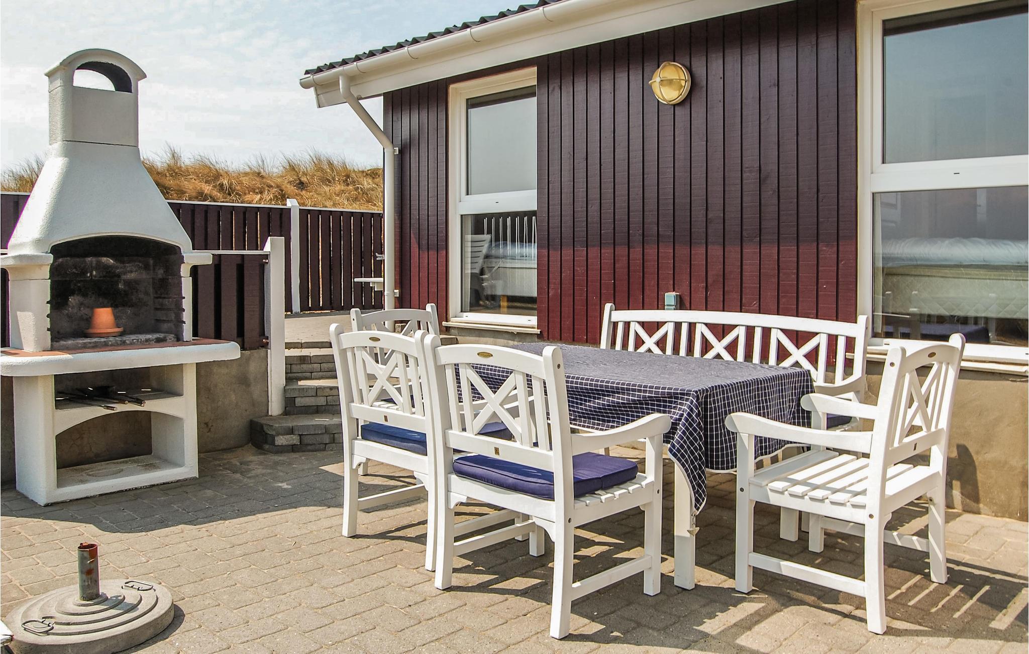 Dieses schöne und versetzt gebaute Ferienhaus ist hoch gelegen in den Dünen. Vom Wohnzimmer und von der Süd- bzw. Ostterrasse aus haben Sie Blick auf den Fjord von Ringkøbing nur 100 Meter vom Haus. Die gut ausgestattete Küche ist modern und stilvoll eingerichtet. Das Haus teilweise mit Fliesenfußböden, teilweise mit Teppichen ausgestattet, daher praktisch und behaglich eingerichtet zugleich. Planschen Sie im 17 Quadratmeter großen Swimmingpool oder entspannen Sie im Whirlpool für zwei Personen. Wenn Sie einen Sauna machen, haben Sie zugleich Aussicht auf den Fjord. Von den Süd- und Ost-Terrassen haben Sie ebenfalls Aussicht auf den Fjord und auf der teilweise überdachten West-Terrasse können Sie zusätzlich die Abendsonne genießen. Gute Bedingungen zum Windsurfen werden Sie hier an mehreren Strandabschnitten finden.
