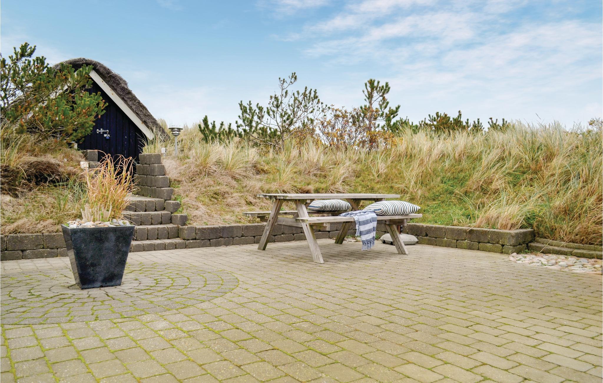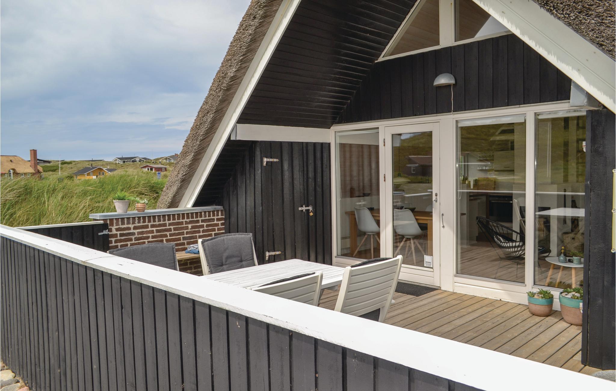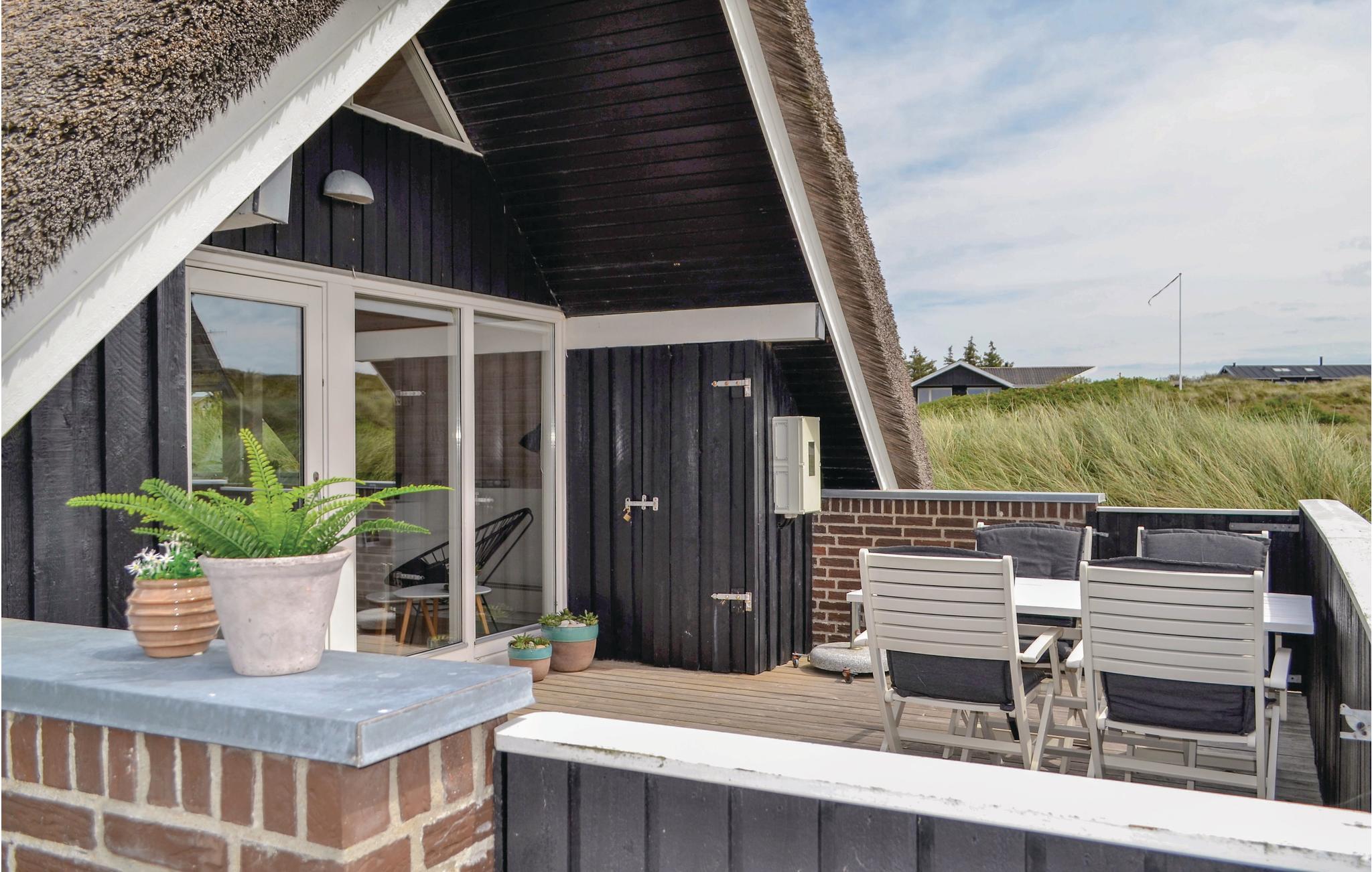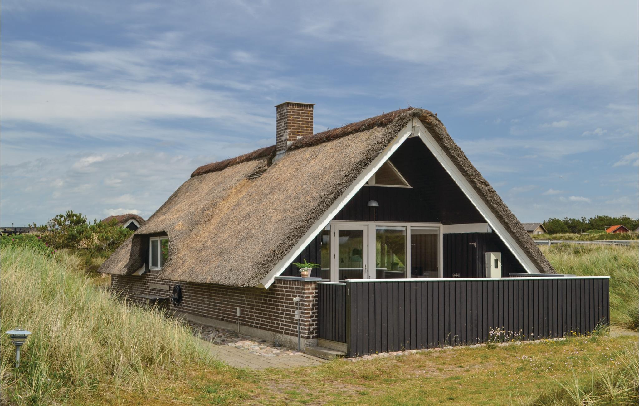 Gemütliches, strohgedecktes Ferienhaus in Hvide Sande mit Blick auf Dünen und moderner Ausstattung für einen erholsamen Urlaub.