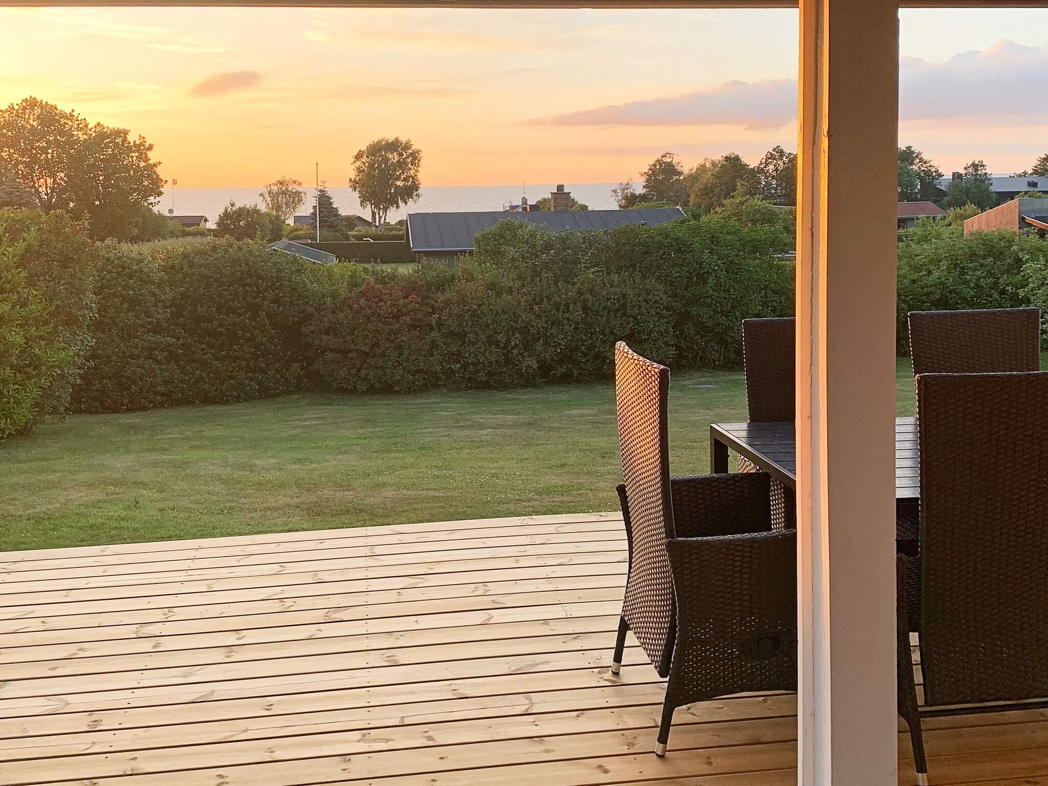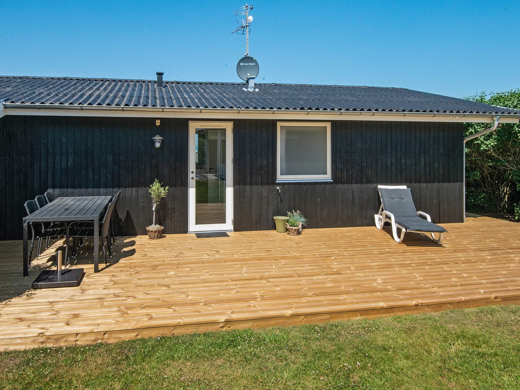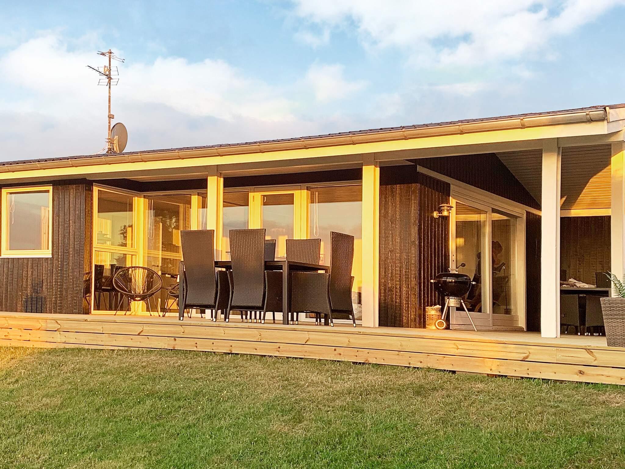 Erhöht gelegenes Ferienhaus mit einzigartigem Meerblick von der Küche sowie dem Wohn- und Schlafzimmer! Das Haus hat eine gut ausgestattete Küche mit Wohn- und Essbereich im direkten Anschluss daran. Großflächiges Naturgrundstück das zum Spielen und Ballspielen einlädt. Fast um das gesamte Haus herum verteilen sich eine 60 m² große offene sowie eine 50 m² große, geschlossene Terrassenfläche. Von der Terrasse aus haben Sie eine fantastische Aussicht in die Umgebung sowie Blick zum Strandufer und einen einzigartigen Meerblick mit Sonnenuntergang. Der Strand liegt ca. 2 Minuten zu Fuß entfernt und ist ein guter Badestrand. Ein Lebensmittelgeschäft findet man auf dem Campingplatz, ca. 300 m vom Haus entfernt.