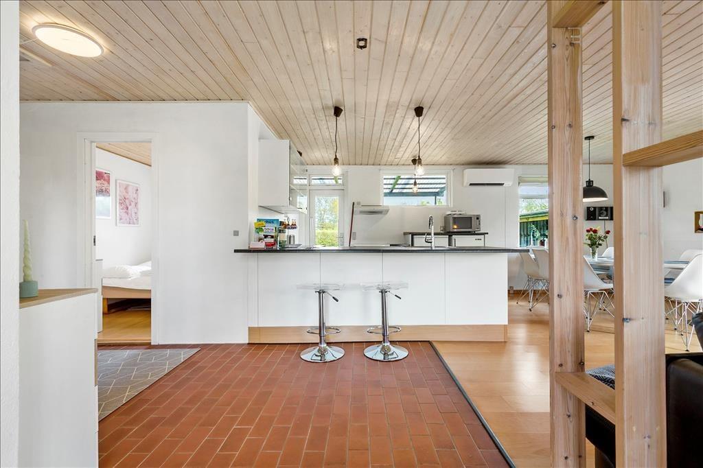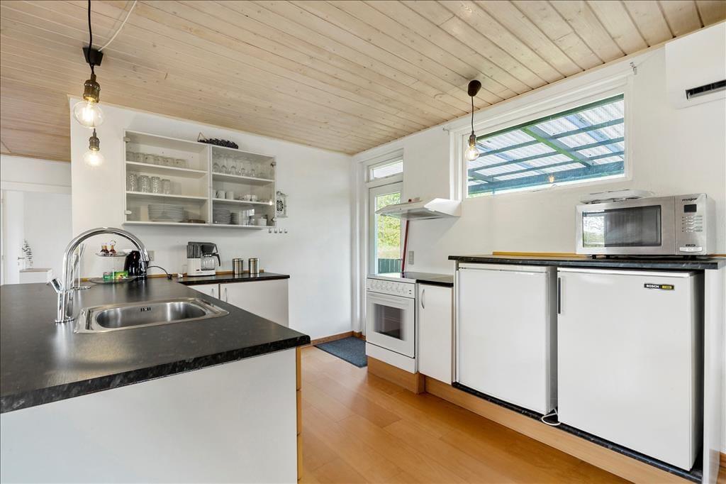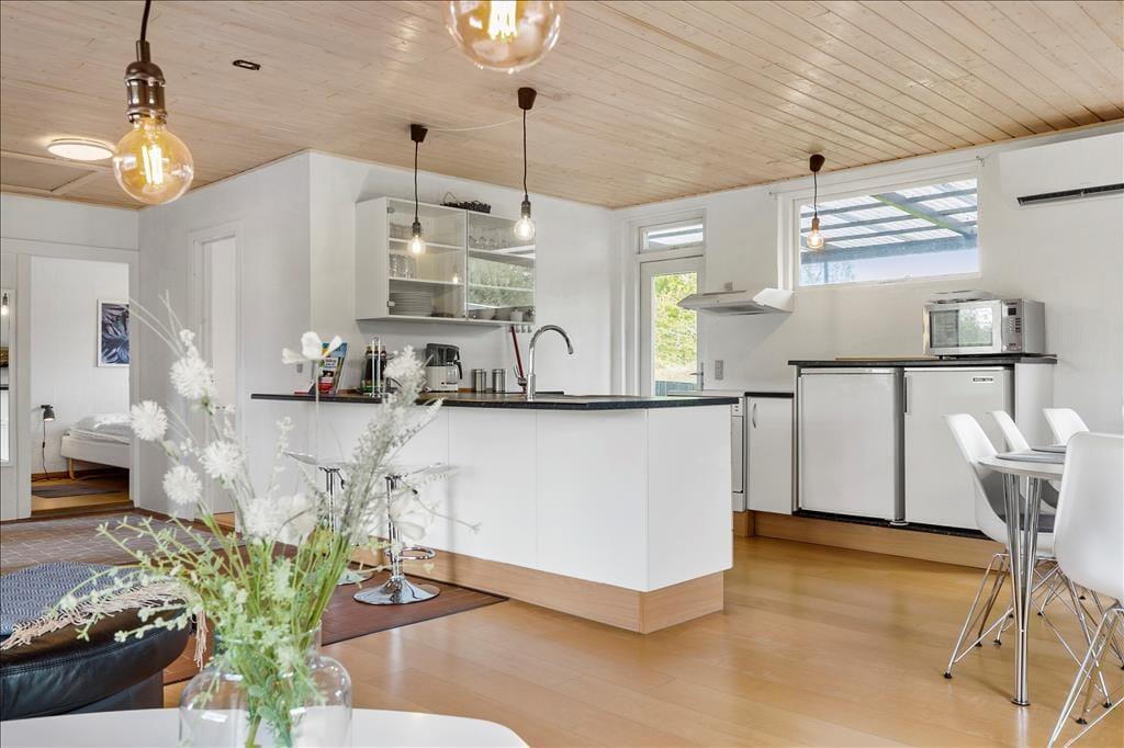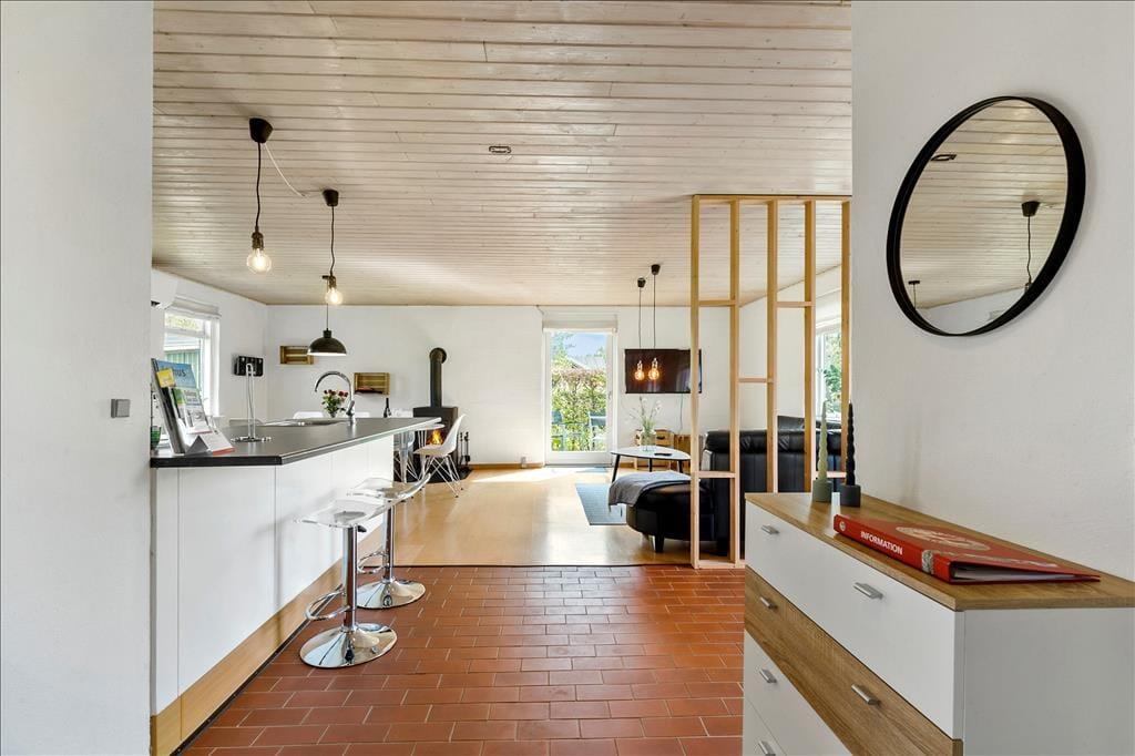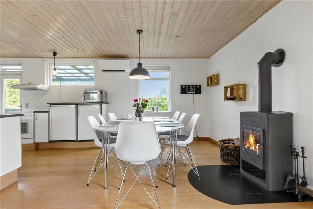 Nur 200 Meter von einem schönen Badestrand entfernt, begrüßt dich dieses gemütliche Ferienhaus, das sich schlicht und gemütlich präsentiert und somit beste Voraussetzungen für gelungene Urlaubstage bietet. Unmittelbar nach dem Betreten des hellen Wohnraums kannst du die gemütliche Wohnatmosphäre wahrnehmen. An kühlen Abenden sorgt ein Kaminofen für behagliche Wärme und klassische Ferienhausstimmung. Der Wohnraum schließt offen an die funktionelle Küche, in der du ohne weiteres köstliche Urlaubsmahlzeiten kreieren kannst. Ein ansprechendes Badezimmer steht zur Verfügung. Die Schlafplätze verteilen sich auf drei Schlafräume mit jeweils einem Doppelbett, die erholsame Nächte für alle Mitreisenden versprechen.