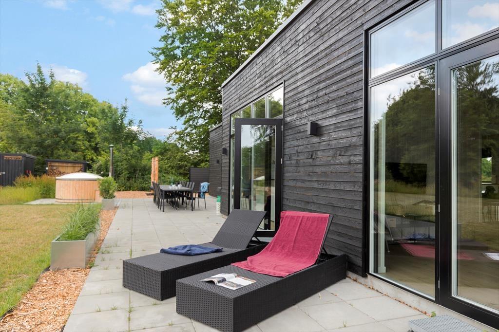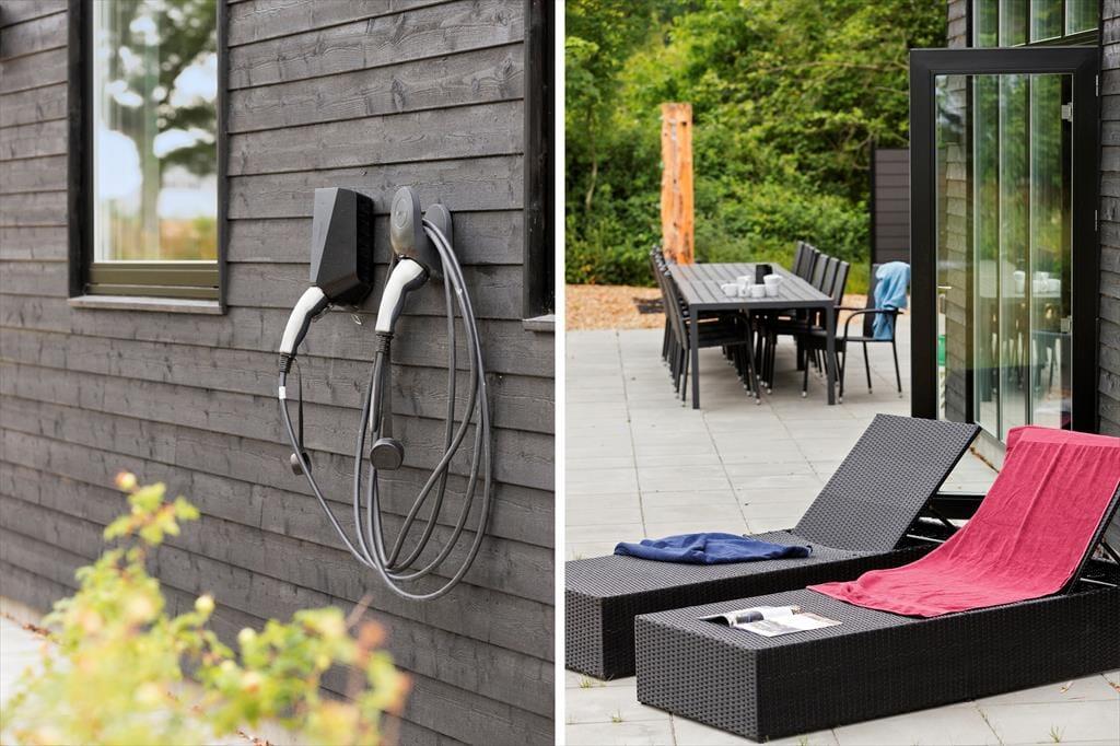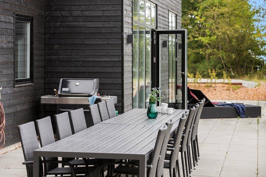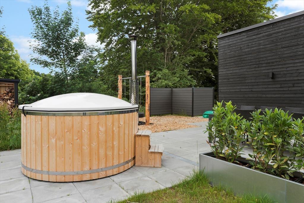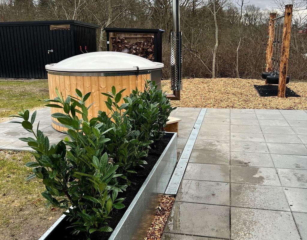 Die Außenbereiche deines Hauses bilden einen wunderbaren Rahmen für wertvolle gemeinsame Stunden mit deiner Familie oder deinen besten Freunden - sei es unter dem klaren, blauen Sommerhimmel oder an einem kühlen Herbsttag. Auf der gepflasterten Terrasse wird jeder deiner Mitreisenden sein persönliches Lieblingsplätzchen finden. Wie wäre es beispielsweise mit einer ruhigen Stunde in der Sonne mit einem guten Buch und einem frischen Kaffee in der Hand? Oder mit einem windgeschützten Plätzchen, an dem du es dir an einem kühlen Tag, in eine Decke eingekuschelt, so richtig gemütlich machst? Liegestühle laden zu erholsamen Momenten ein, bei denen du die frische Luft, das Vogelgezwitscher und die Natur ringsum in vollen Zügen genießt. Unmittelbar nachdem ihr am Abend die Grillkohlen angeheizt habt, breitet sich ein herrlicher Duft aus, der euch in eine erwartungsfreudige Stimmung versetzt. Sobald sich die Abenddämmerung über das Gebiet legt, ist es an der Zeit, sich ein Bad in der Schwedischen Badetonne zu gönnen. Was könnte es Schöneres geben, als sich im warmen Wasser zu entspannen und auf die funkelnden Sterne am pechschwarzen Nachthimmel zu blicken? In den Wintermonaten solltet ihr euch einmal gemeinsam in das eiskalte Meer wagen und euch anschließend in der Sauna oder in der Schwedischen Badetonne aufwärmen. Das sogenannte Winterbaden ist eine wahre Wohltat für Körper und Geist und erfreut sich in Dänemark sehr großer Beliebtheit. Beachte aber bitte, dass die Schwedische Badetonne nur bei Außentemperaturen über 3°C benutzt werden darf.