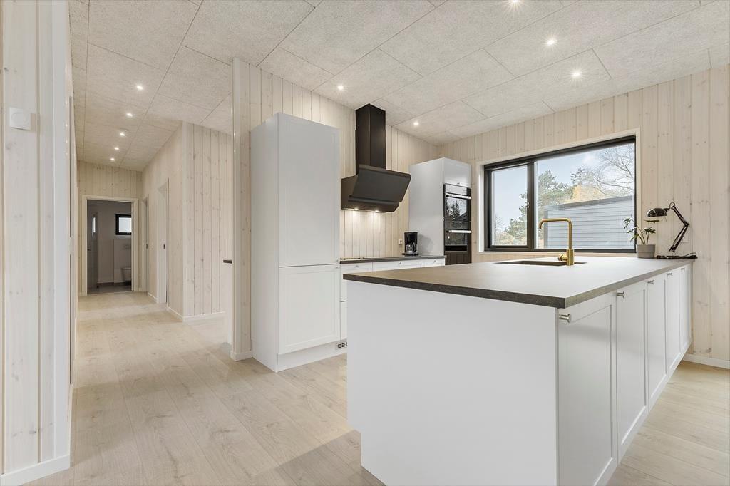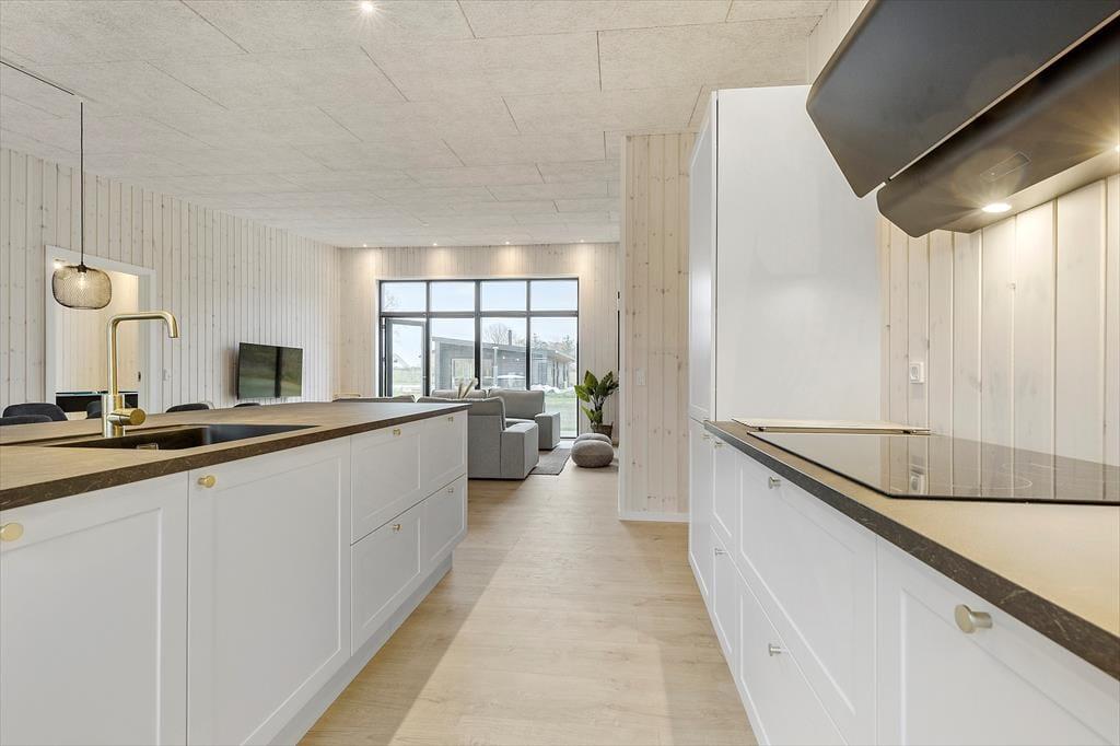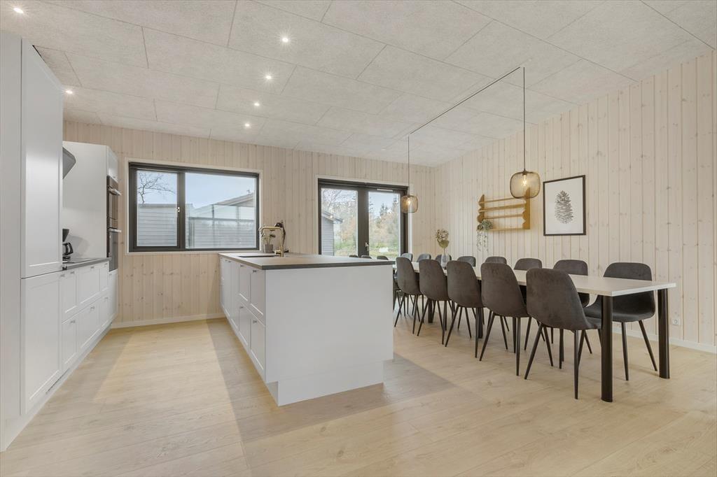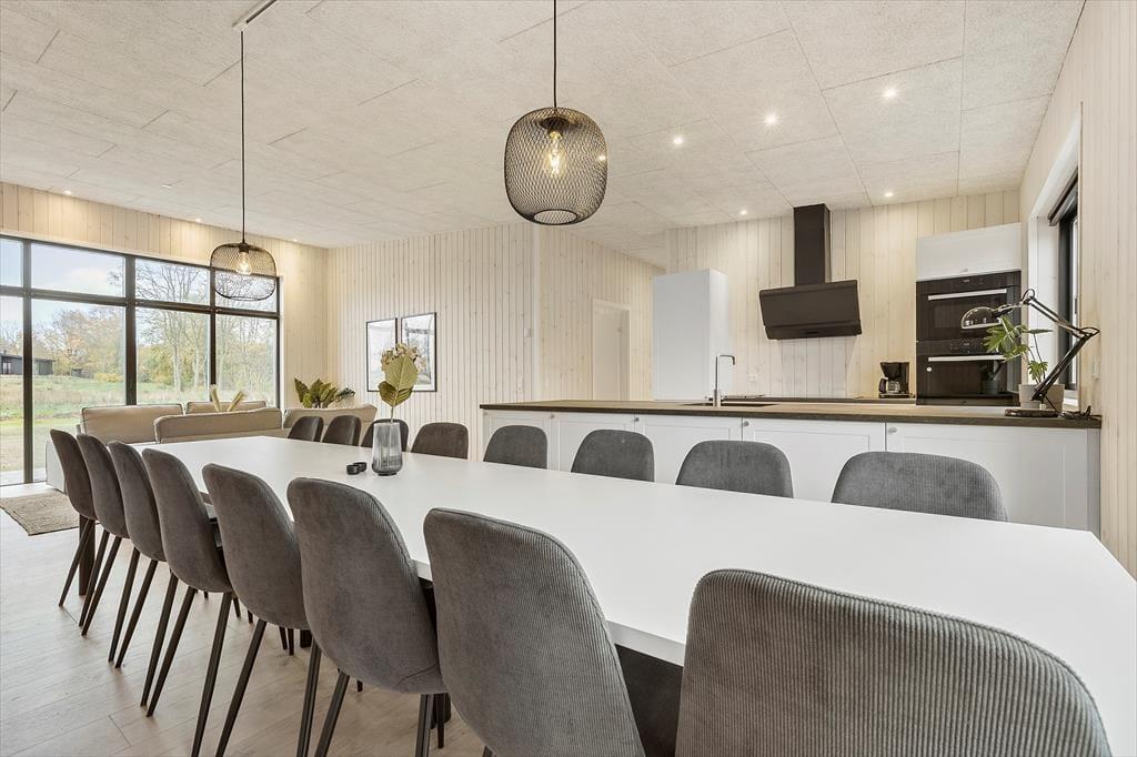 Unmittelbar nachdem du bei deiner Anreise am Haus geparkt hast, werden deine Kinder loslaufen und das geräumige, moderne Ferienhaus erkunden. Dein Urlaubsdomizil präsentiert sich wohldurchdacht, ausgesprochen schön und zeitlos. Es bildet einen fantastischen Rahmen für erholsame Urlaubstage, in dem Gemütlichkeit und Praktisches Hand in Hand gehen. Jeden neuen Urlaubstag beginnt ihr mit der Zubereitung eures gemeinsamem Frühstücks in der tollen Küche, die Platz für viele helfende Hände bietet. Dank zweier Backöfen könnt ihr nach Herzenslust Brötchen und Kuchen backen. Die Küche ist offen mit dem langen Esstisch verbunden, an dem ihr gern in geselliger Runde esst, plaudert und die Erlebnisse des langen Urlaubtages Revue passieren lasst.