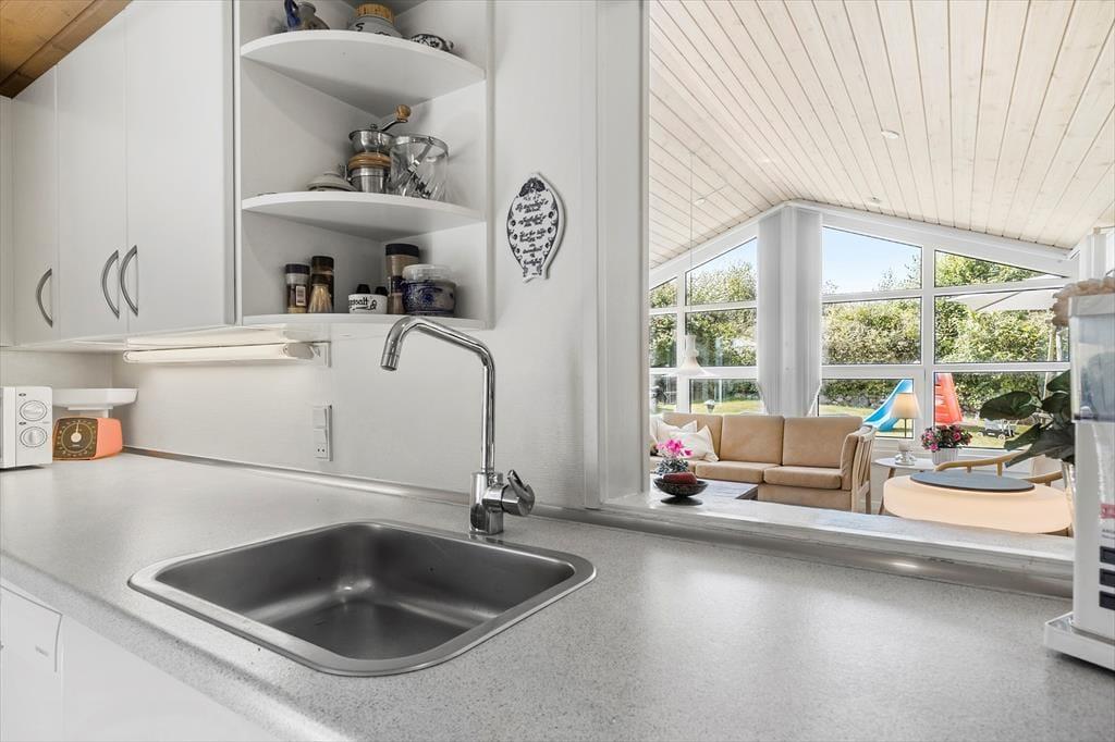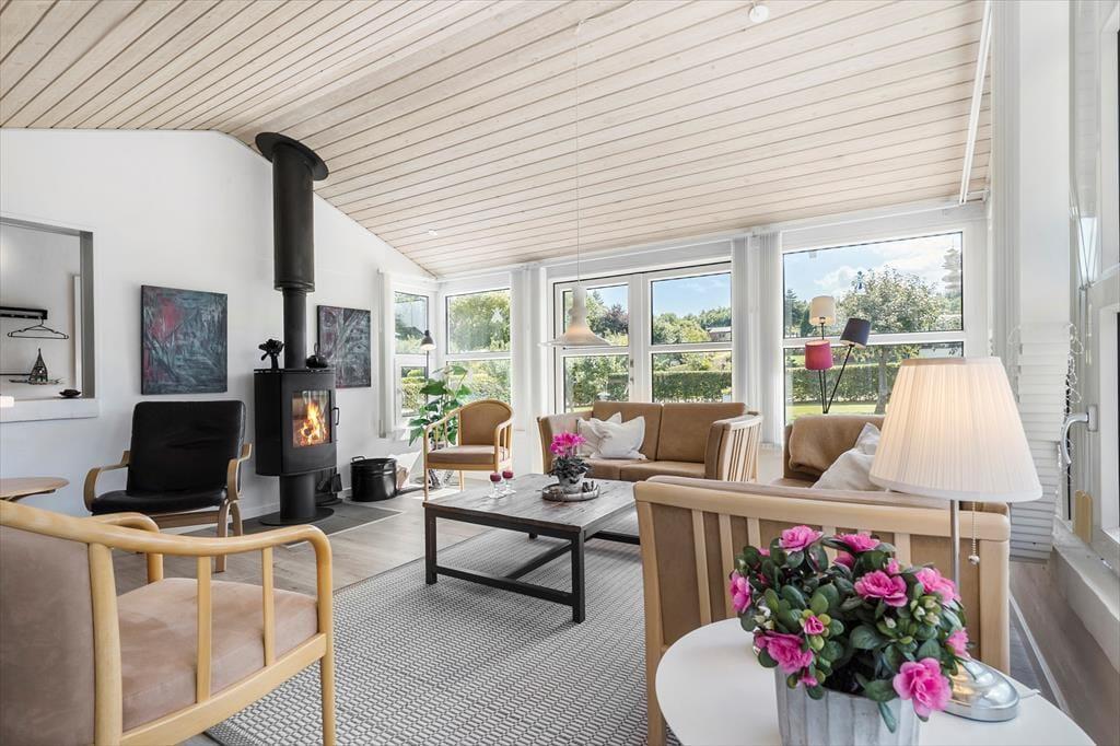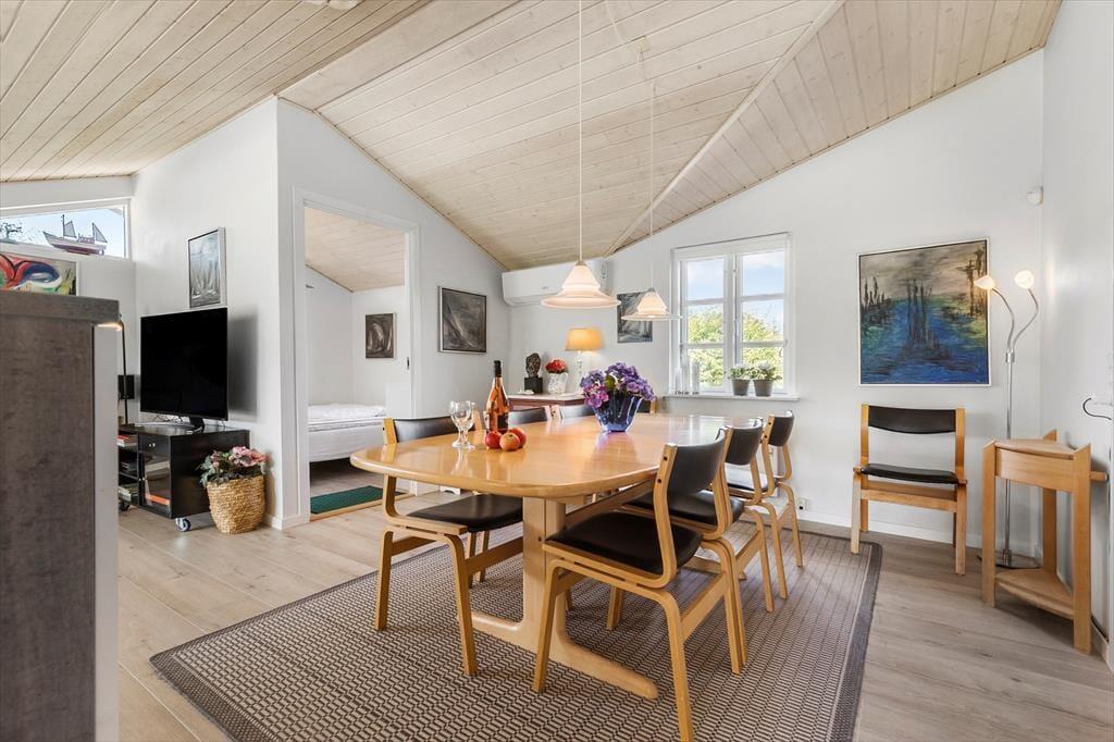 Nicht weit von einem schönen Badestrand entfernt, erwartet Sie dieses gemütliche und gepflegte Urlaubsdomizil. Das Haus beinhaltet einen angenehm hellen, gemütlichen Wohnraum, der mit guten Möbeln, einem Kaminofen und einer Wärmepumpe ausgestattet ist. In Verbindung mit dem Wohnraum lockt die schöne und praktische Küche, in der Ihnen diverse Küchengroßgeräte die Zubereitung Ihrer Mahlzeiten erleichtern. Das schöne Badezimmer empfängt Sie mit einer Duschnische, einer Fußbodenheizung, einer Waschmaschine und einem Wäschetrockner. Die vorhandenen Schlafplätze verteilen sich auf zwei gute Schlafräume von denen einer mit einem Doppelbett eingerichtet ist. Im zweiten Schlafraum stehen ein Einzel- und ein Etagenbett für Sie bereit. Zusätzliche Schlafgelegenheiten befinden sich in Form eines guten, doppelten Schlafsofas im Wohnraum. Für die kleinsten Urlaubsgäste sind ein Hochstuhl und ein Kinderbett vorhanden. Gleiches gilt für eine Internetverbindung.