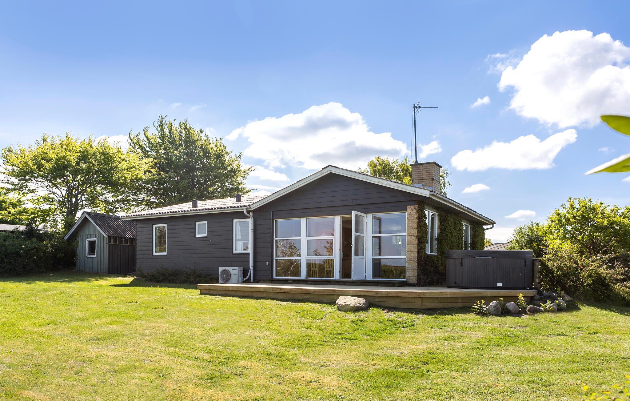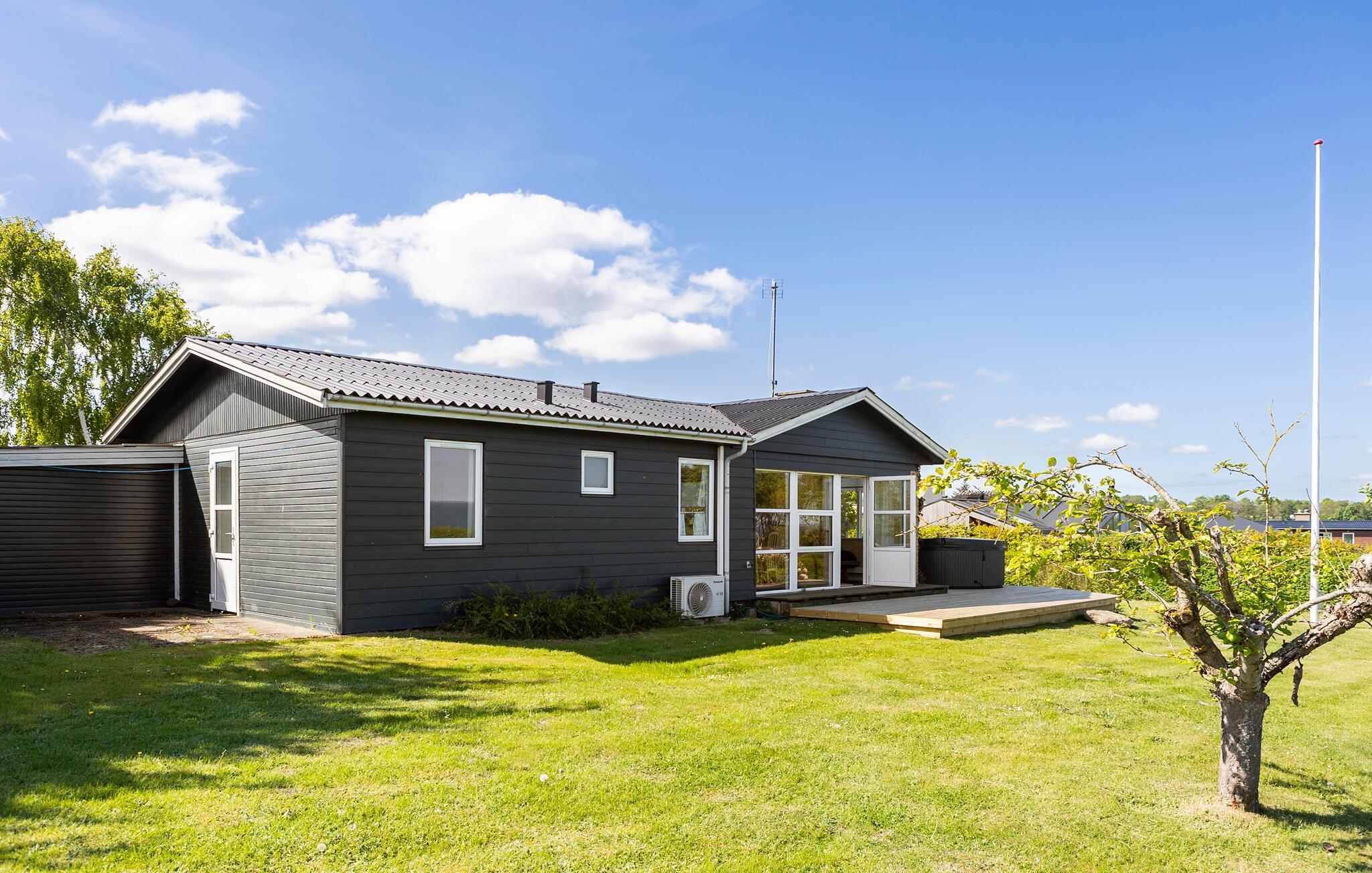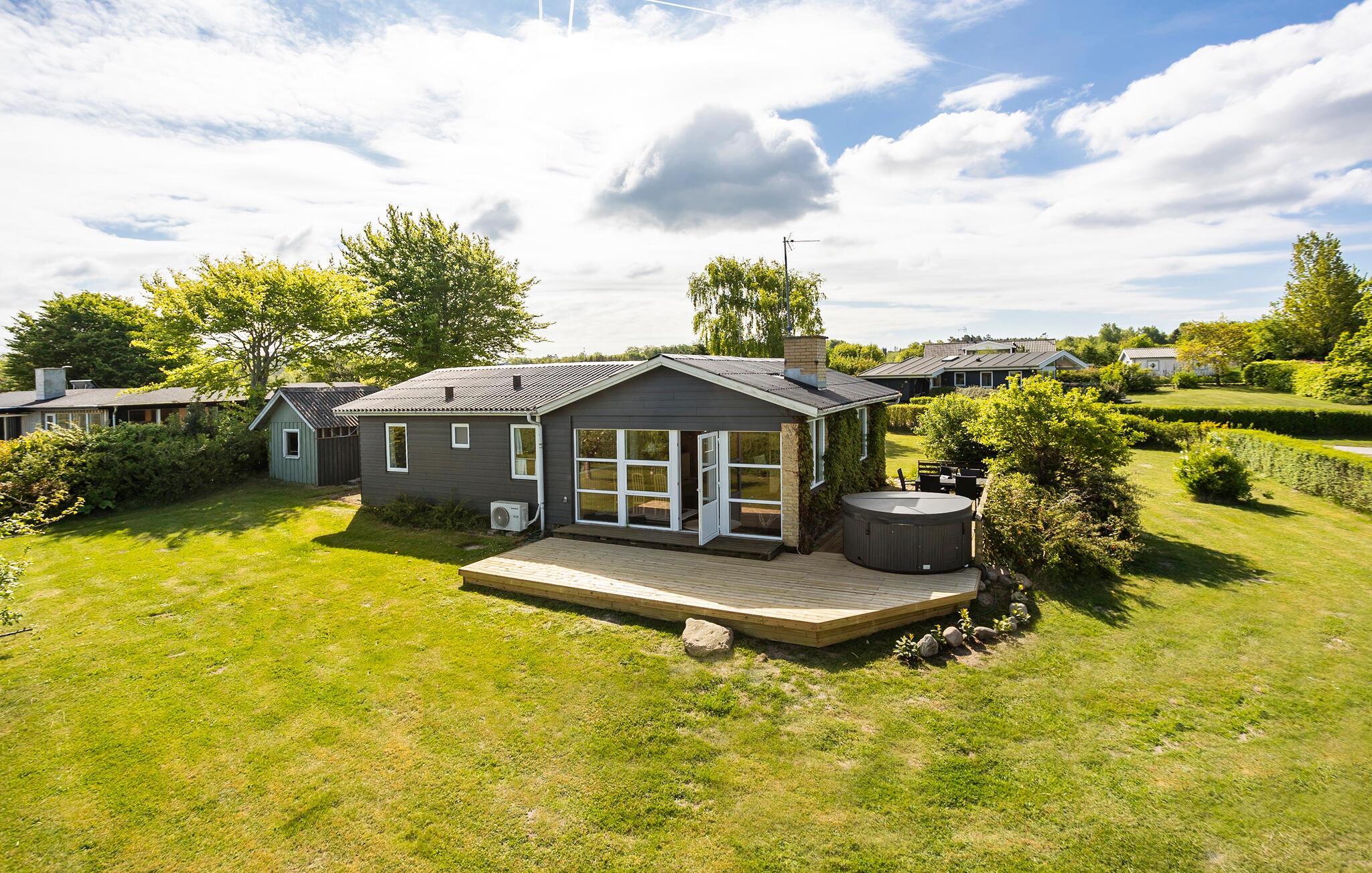 Gemütliches Ferienhaus in Skovgårde mit Meerblick, Terrasse, großem Garten und Außen-Whirlpool für erholsame Urlaubstage.