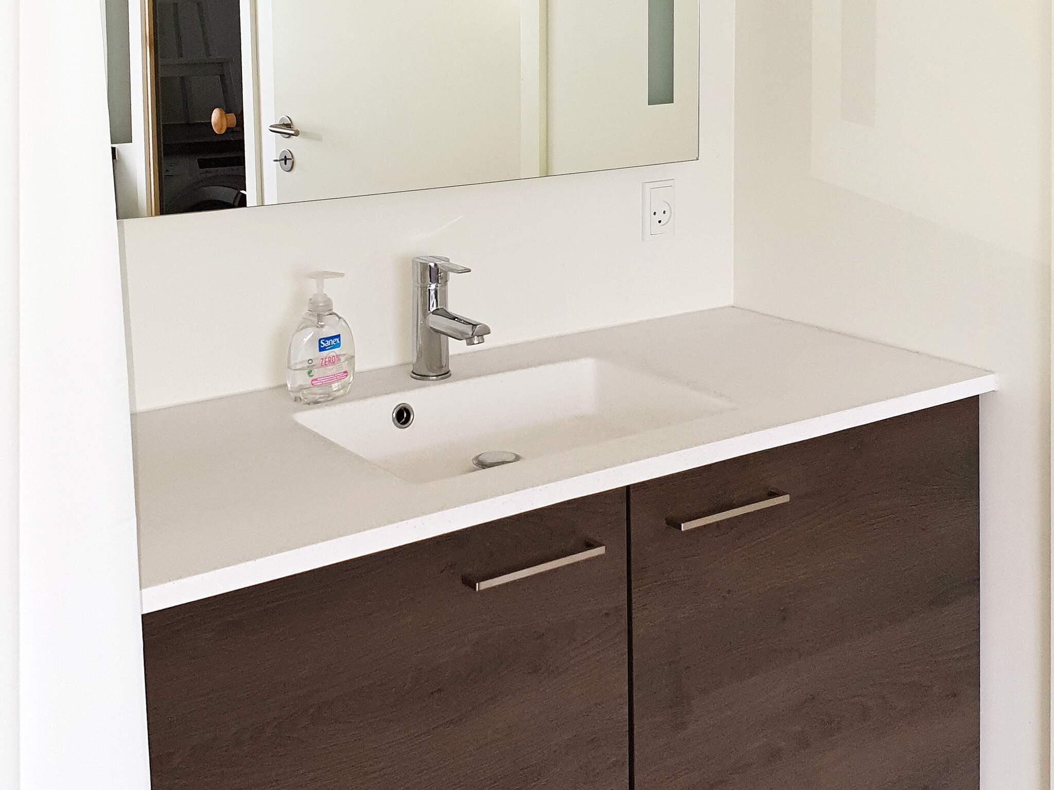 Bad: Waschm., WC, Waschb., Dusche, Fußbodenheiz.