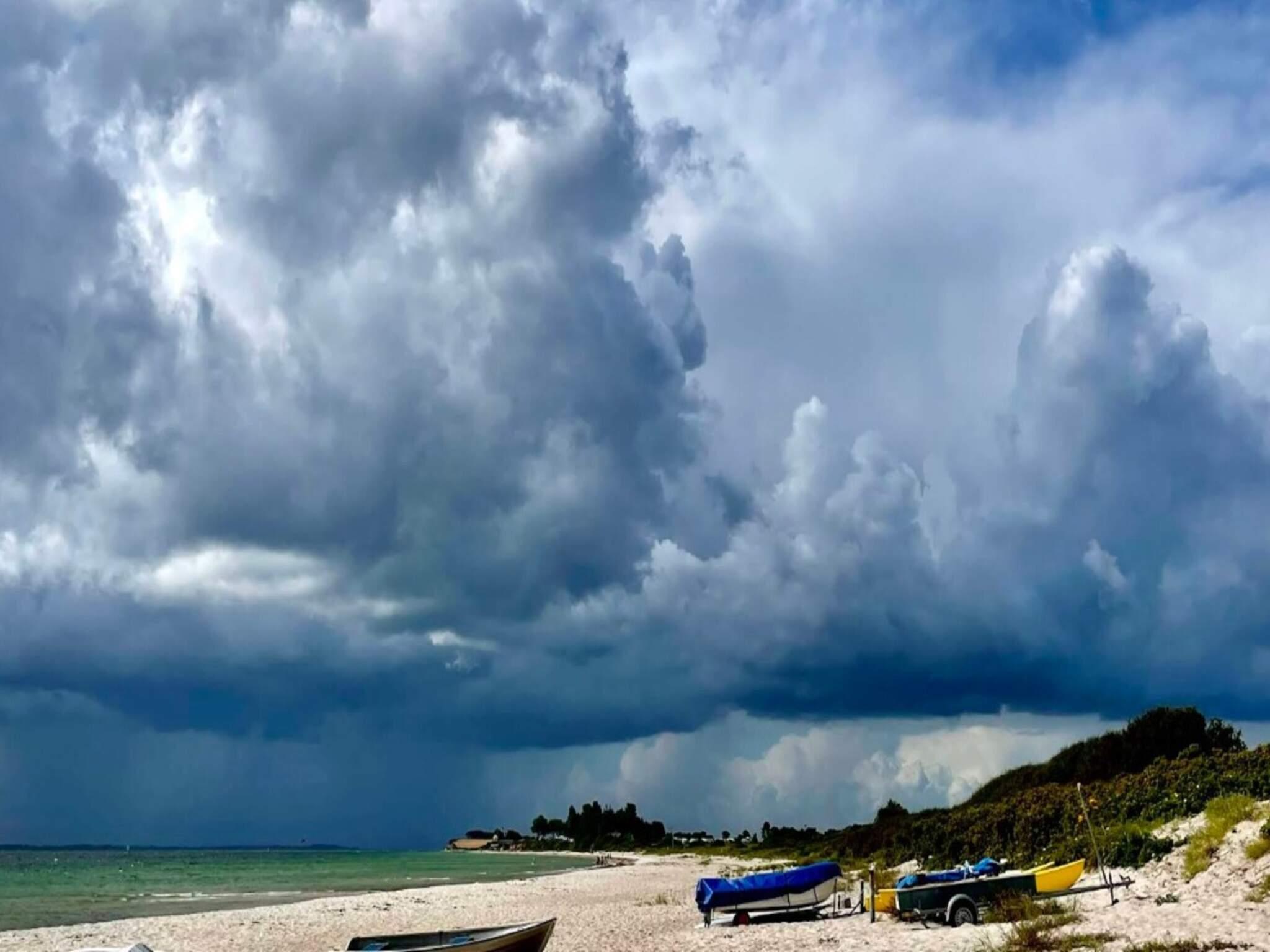 Das 2020 modernisierte Badezimmer verfügt über eine Dusche und Fußbodenheizung für zusätzlichen Komfort. Gästen steht außerdem ein praktischer Hauswirtschaftsraum mit Waschmaschine, separatem Gefrierschrank und zusätzlichem Kühlschrank zur Verfügung, der auch längere Aufenthalte angenehm macht. Draußen steht eine praktische Warm- und Kaltwasserdusche zur Verfügung – ideal zum Abduschen nach einem Tag am Strand oder einem erfrischenden Bad.