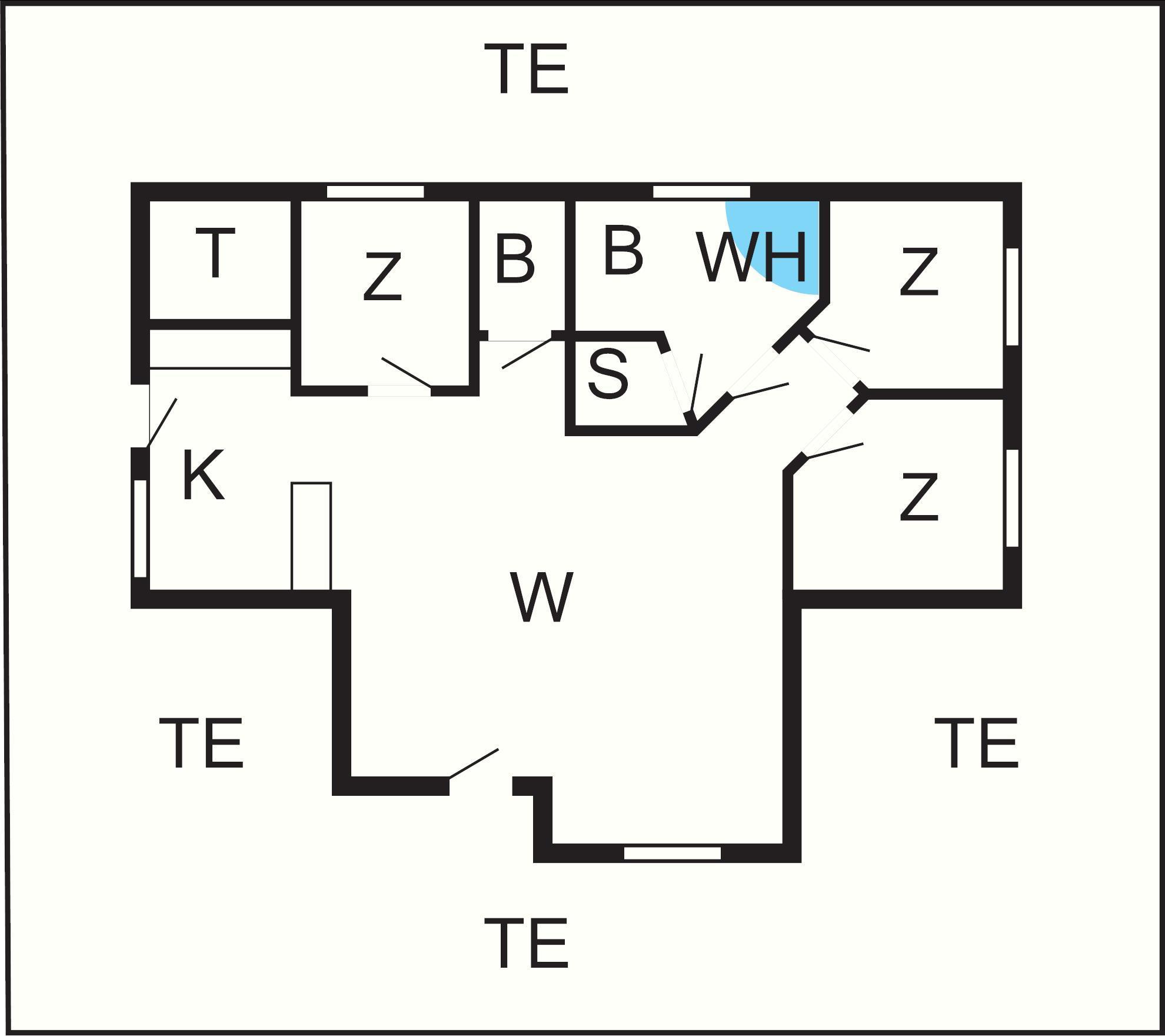 Bad: WC, Waschb., Dusche, Fußbodenheiz.