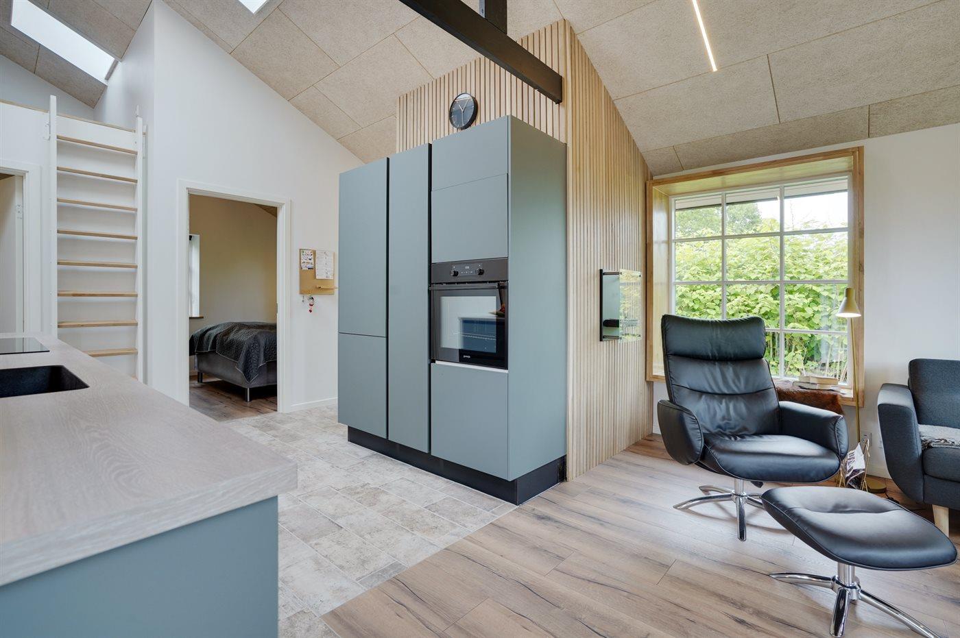 Modernes, barrierefreies Ferienhaus in Skovmose mit Außenwhirlpool, Sauna und Elektroauto-Ladestation nahe dem Strand.