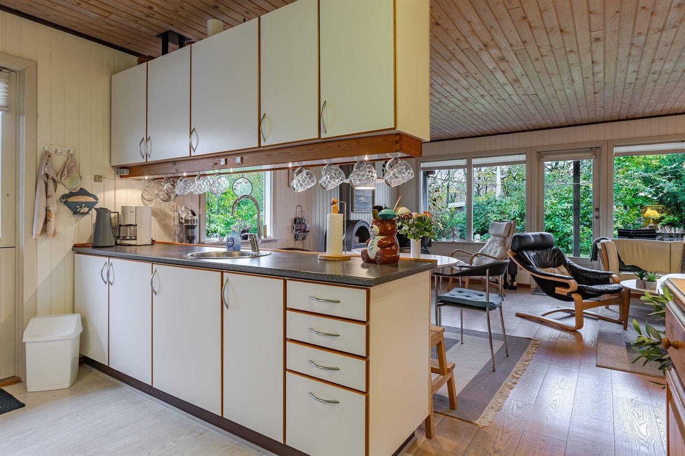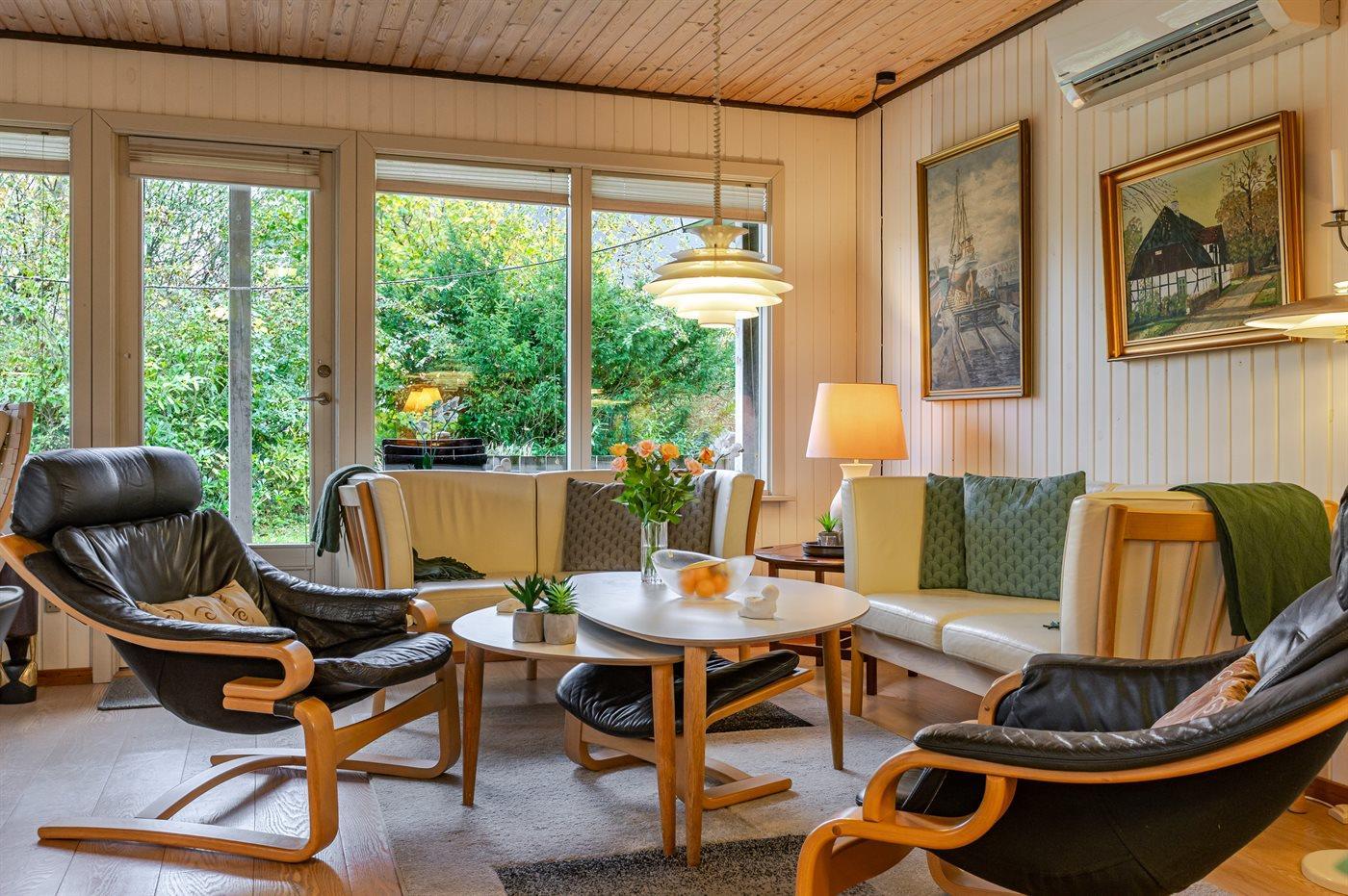 Dein gemütliches Ferienhaus liegt ganz in der Nähe eines schönen, kinderfreundlichen Sandstrandes im beliebten Gebiet Skovmose.
