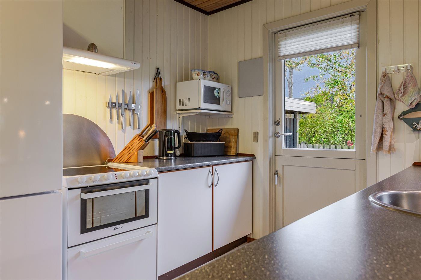Die Küche ist mit Kühlschrank ausgestattet. Außerdem gibt es 4 Keramik-Kochfelder. Mikrowelle. Die Ferienwohnung hat einen kombinierten Herd (mit Backofen) und eine Geschirrspülmaschine.