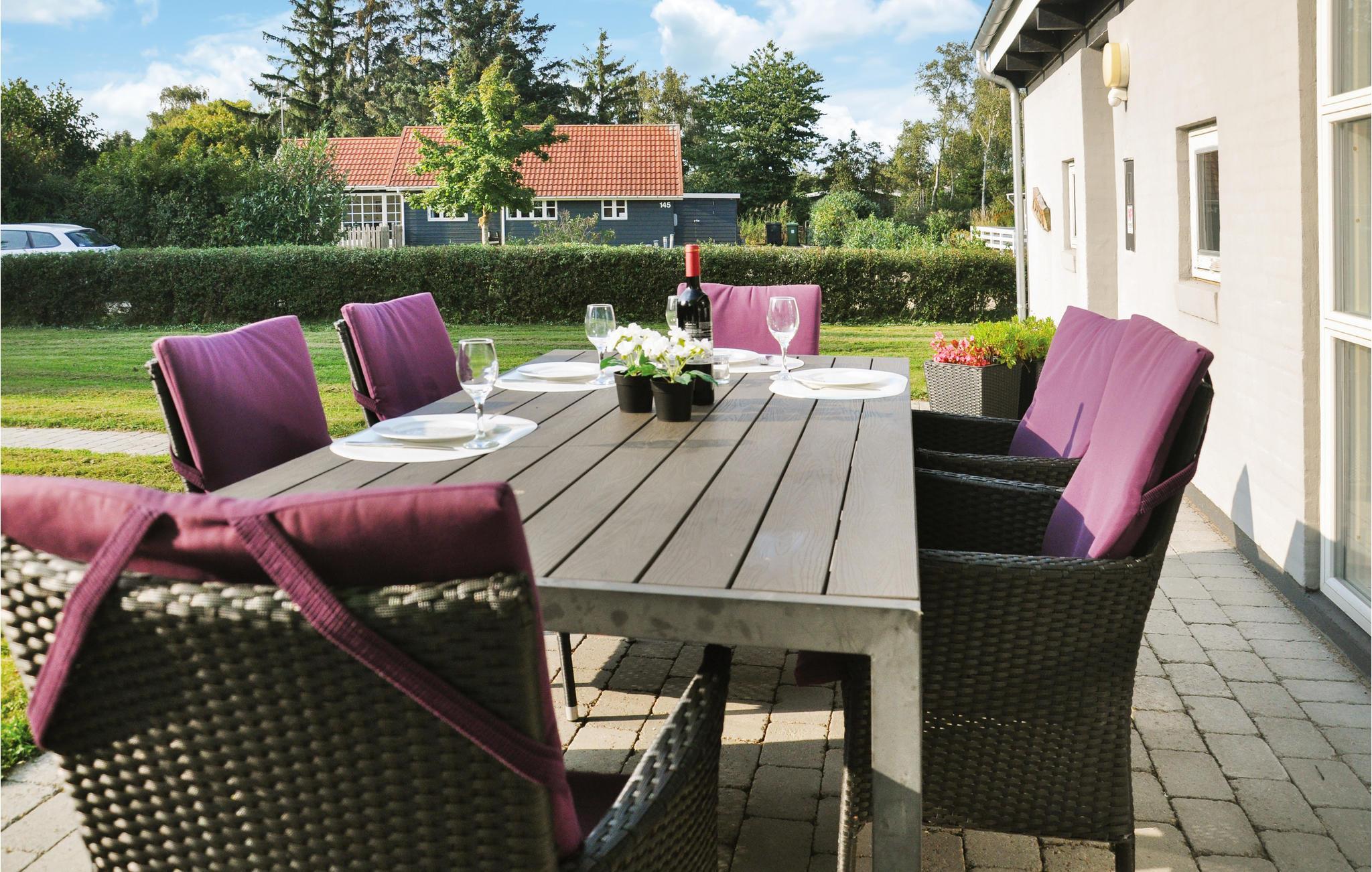 Dieses zweistöckige Ferienhaus nahe Skovmose Strand bietet moderne Ausstattung und eine schöne Terrasse für entspannte Urlaubstage.