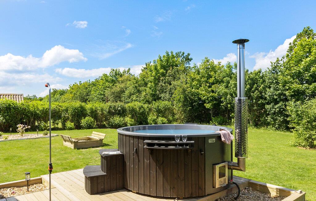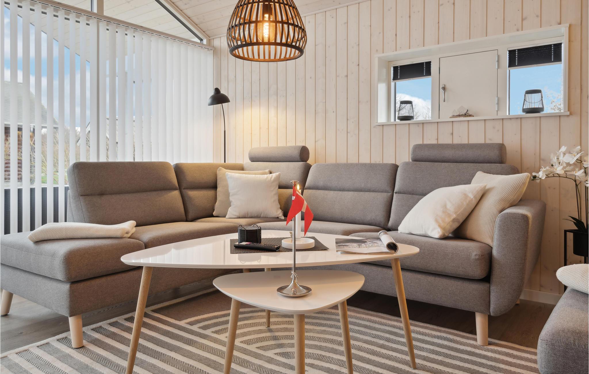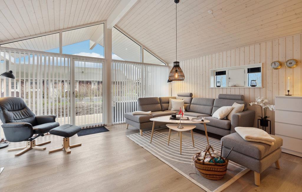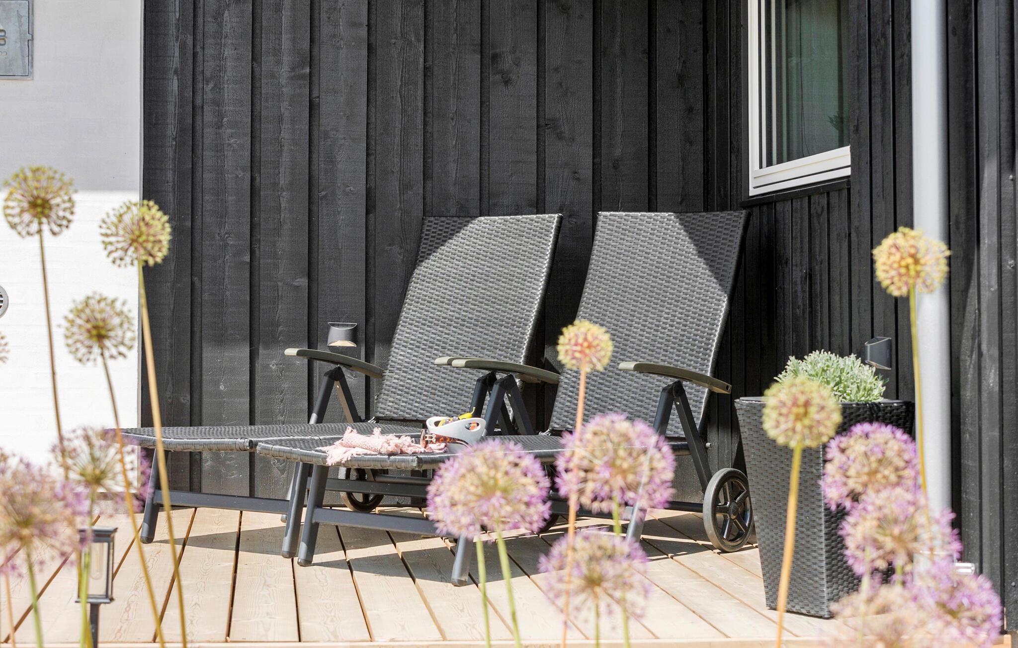 Modernes Ferienhaus auf Als mit Kamin, finnischem Holzbad und privatem Garten für entspannte Urlaubstage.