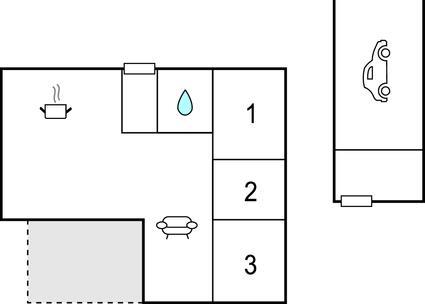 Schlafzimmer 6m2 (nr. 1) - 2 Schlafmöglichkeiten. (Doppelbett(en)).