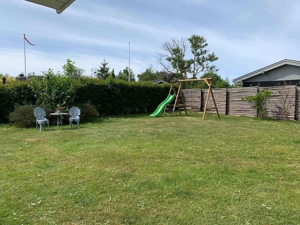 In der schönen Ferienoase Kongsmark Strand liegt dieses gepflegte Ferienhaus, in dem Sie das Leben drinnen wie draußen genießen können. Das Haus verfügt über einen schönen, geschlossenen Garten mit zwei Terrassen und ist isoliert, sodass es ganzjährig genutzt werden kann. Es befindet sich in einem ruhigen und friedlichen Ferienhausgebiet, nur ca. 400 Meter vom Wasser entfernt, das zu erfrischenden Bädern und langen Spaziergängen am Strand einlädt – je nach Wind und Wetter. Zudem liegen ein Wegenetz, Grünflächen und ein gemeinsamer Spielplatz in der Nähe. Das Haus ist gemütlich eingerichtet mit großen, hellen Räumen sowie Fußbodenheizung in Flur, Bad und Küche. Küche und Wohnzimmer sind offen miteinander verbunden. Die zweiseitige Küche ist gepflegt und mit weißen Fronten sowie Holzarbeitsplatten ausgestattet. Das Wohnzimmer verfügt über einen schönen Holzboden und einen Kaminofen, den Sie bei Bedarf anheizen können. Entspannen Sie auf dem komfortablen Sofa, genießen Sie gemeinsame Mahlzeiten am Esstisch und nutzen Sie im Sommer den direkten Zugang zur überdachten Terrasse. Das Haus bietet außerdem drei schöne Schlafzimmer und ein gepflegtes Badezimmer. Das vierte Schlafzimmer befindet sich im Anbau mit Zugang zur Terrasse, wo sich auch ein zusätzliches Bad mit WC und Dusche befindet. Warme Sommerabende lassen sich auf einer der beiden Terrassen genießen: auf der geschützten Terrasse bei der Küche mit einem charmanten Gartenkamin oder auf der westlich ausgerichteten, überdachten Terrasse – ideal zum Entspannen auf einer Liege. Ein örtlicher Supermarkt, eine Eisdiele und verschiedene Restaurants sind nur wenige Autominuten entfernt, während Slagelse etwa 20 Minuten entfernt liegt.