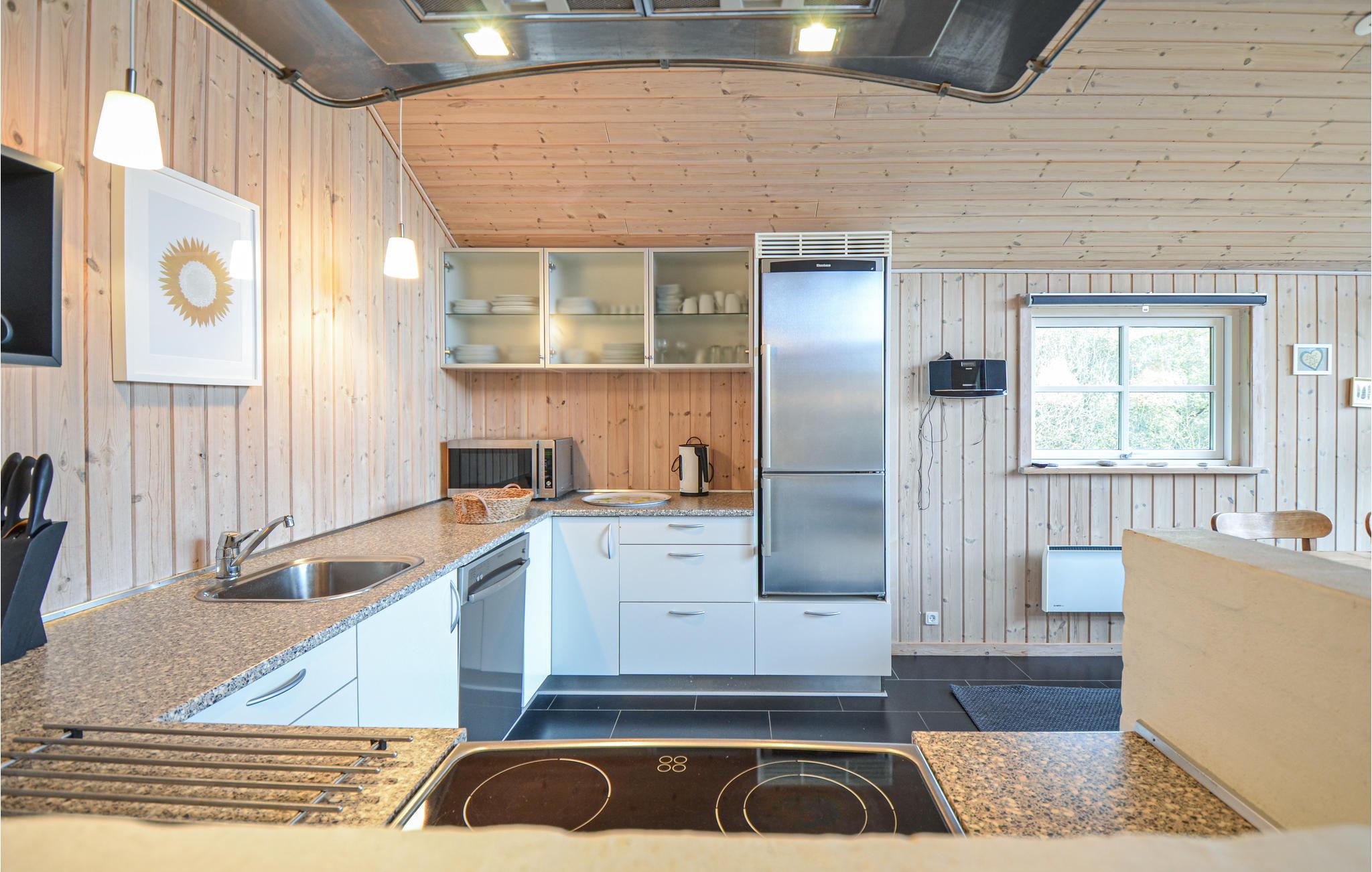 Das Gebiet bei Helgenæs ist ein schönes Naturgebiet mit einer hügeligen Landschaft, gewundenen Straßen, Aussicht auf das Meer von den meisten Orten und einem reichen Tierleben. Das Ferienhaus liegt an einem sehr kleinen See und von der Terrasse können Sie die Natur genießen. Es ist hübsch und modern eingerichtet und verfügt eine, zum Wohnzimmer hin offene Küche/Essplatz mit Zugang zu einer überdachten Terrasse. Das Badezimmer ist sehr hübsch und u.a. mit einem Whirlpool und einer Sauna eingerichtet. Aufgrund seiner drei schönen Zimmer und einem offenen Schlafboden ist das Haus sehr gut für zwei Familien geeignet. Der Leuchtturm von Sletterhage ist einen Besuch wert. Im Gebiet kann der Mobilfunkempfang variieren.