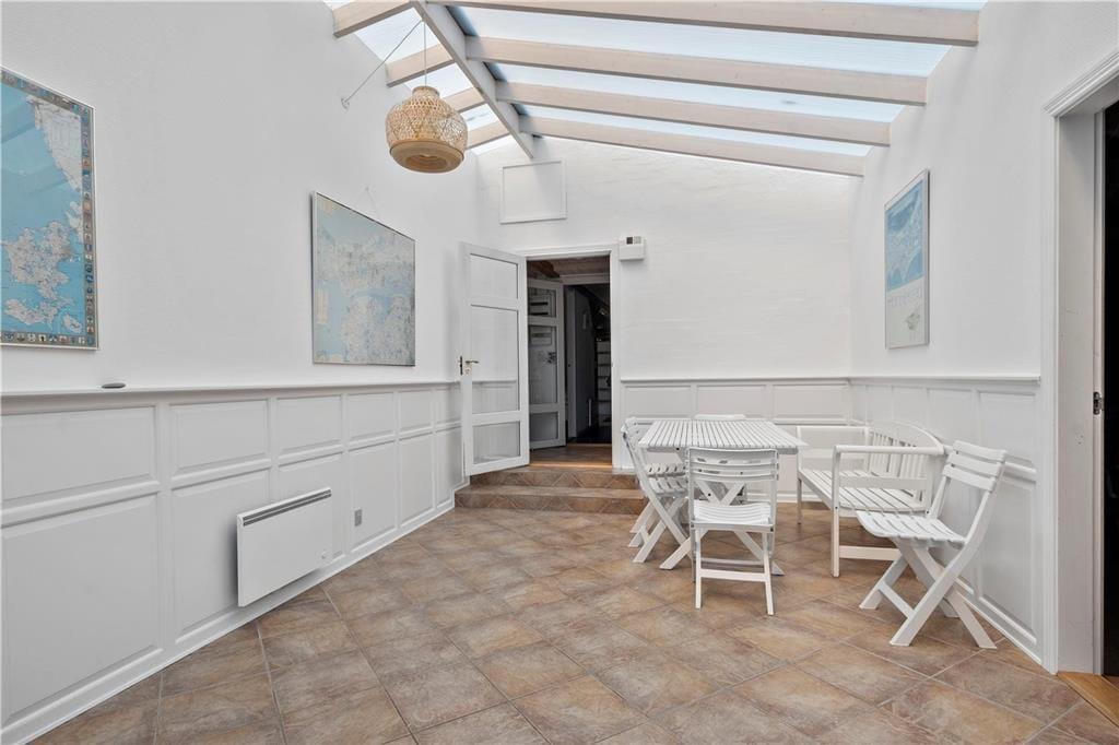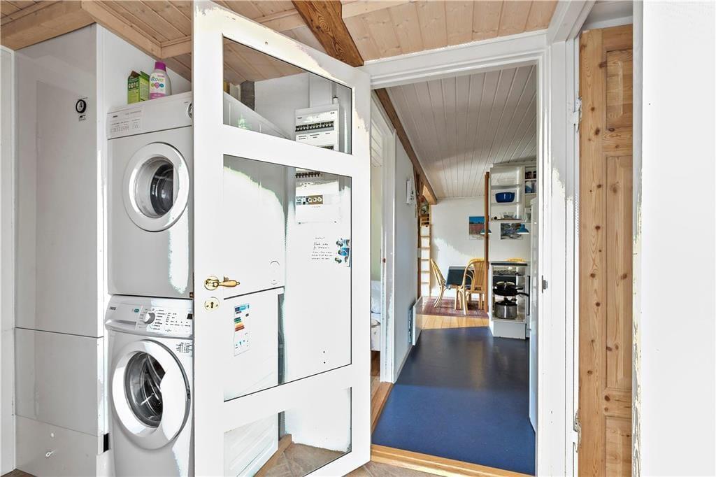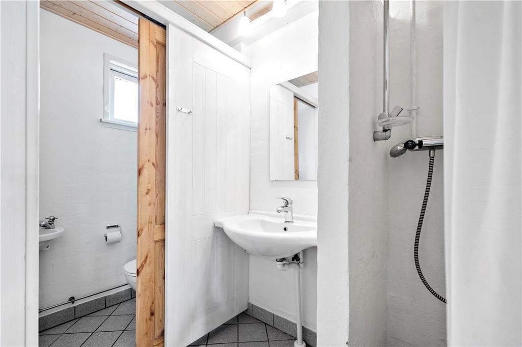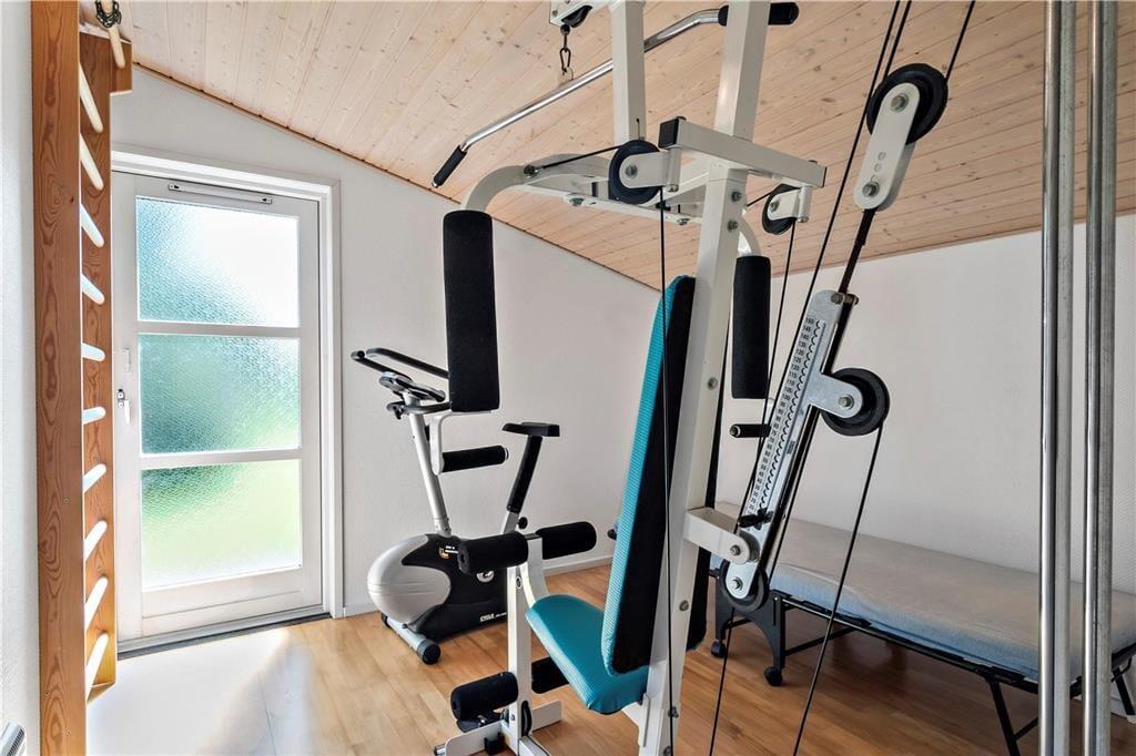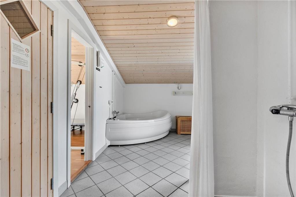 Willkommen in diesem 149 m² großen Ferienhaus im fantastischen Urlaubsgebiet Slettestrand. Obwohl das Haus bereits aus dem Jahr 1998 stammt, ist jeder einzelne Quadratmeter in einem guten Zustand und schön gepflegt. Sie betreten das Urlaubsdomizil durch den attraktiven Wintergarten, der Ihnen viel Platz für Ihre Jacken und Schuhe bietet. In dessen Verlängerung kommen Sie durch einen kleinen Zwischengang, in dem eine Waschmaschine und ein Wäschetrockner für Sie bereit stehen. Die Küche ist schlicht aber praktisch und liegt in offener Verbindung zum Essplatz. Von hier aus führt eine Treppe hinauf auf den großen Schlafboden, der sich von hier über den gesamten Rest des Hauses erstreckt. Dieser Schlafboden wird sich besonders bei den jüngsten Familienmitgliedern großer Beliebtheit erfreuen. Über ein paar Stufen erreichen Sie den Wohnraum, der Sie mit einer älteren, aber behaglichen Möblierung empfängt. In diesem Bereich des Hauses können Sie es sich im Kreise Ihrer Lieben wunderbar vor dem romantisch knisternden Kaminofen gemütlich machen oder auch gemeinsam einen spannenden Film anschauen. Die vorhandenen Schlafplätze verteilen sich auf insgesamt vier Schlafräume, von denen drei mit jeweils einem Doppelbett eingerichtet sind. Im vierten Schlafraum steht ein Etagenbett für Sie bereit. Zur Wohnfläche zählen darüber hinaus ein Badezimmer mit einer Duschnische, ein Gäste-WC und eine große Wellnessabteilung, die Sie mit einem Whirlpool, einer Sauna, einer weiteren Duschnische sowie einem kleineren Trainingsraum verwöhnt. Hier werden Sie sich wunderbar erholen und entspannen und auf Wunsch auch an Ihrer Kondition und Physis feilen. Erwähnenswert ist außerdem der auf dem Dach platzierte Solarkollektor, der im Haus für warmes Wasser sorgt. In der guten Garage laden eine Dartscheibe und eine Tischtennisplatte zu vergnüglichen, aktiven Stunden ein. Dieses schöne Ferienhaus eignet sich sehr gut für eine größere Familie, die keinen übermäßigen Wert auf eine durchweg moderne und luxuriöse Ausstattung legt.
