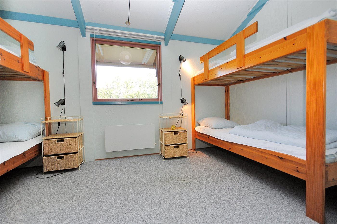 Die Schlafplätze verteilen sich auf 4 Schlafräume. 6 Schlafplätze in Doppelbetten. 4 Schlafplätze in Etagenbetten. Ferner steht ein Kinderbett zur Verfügung.