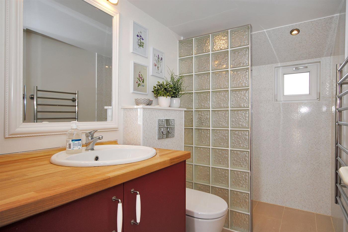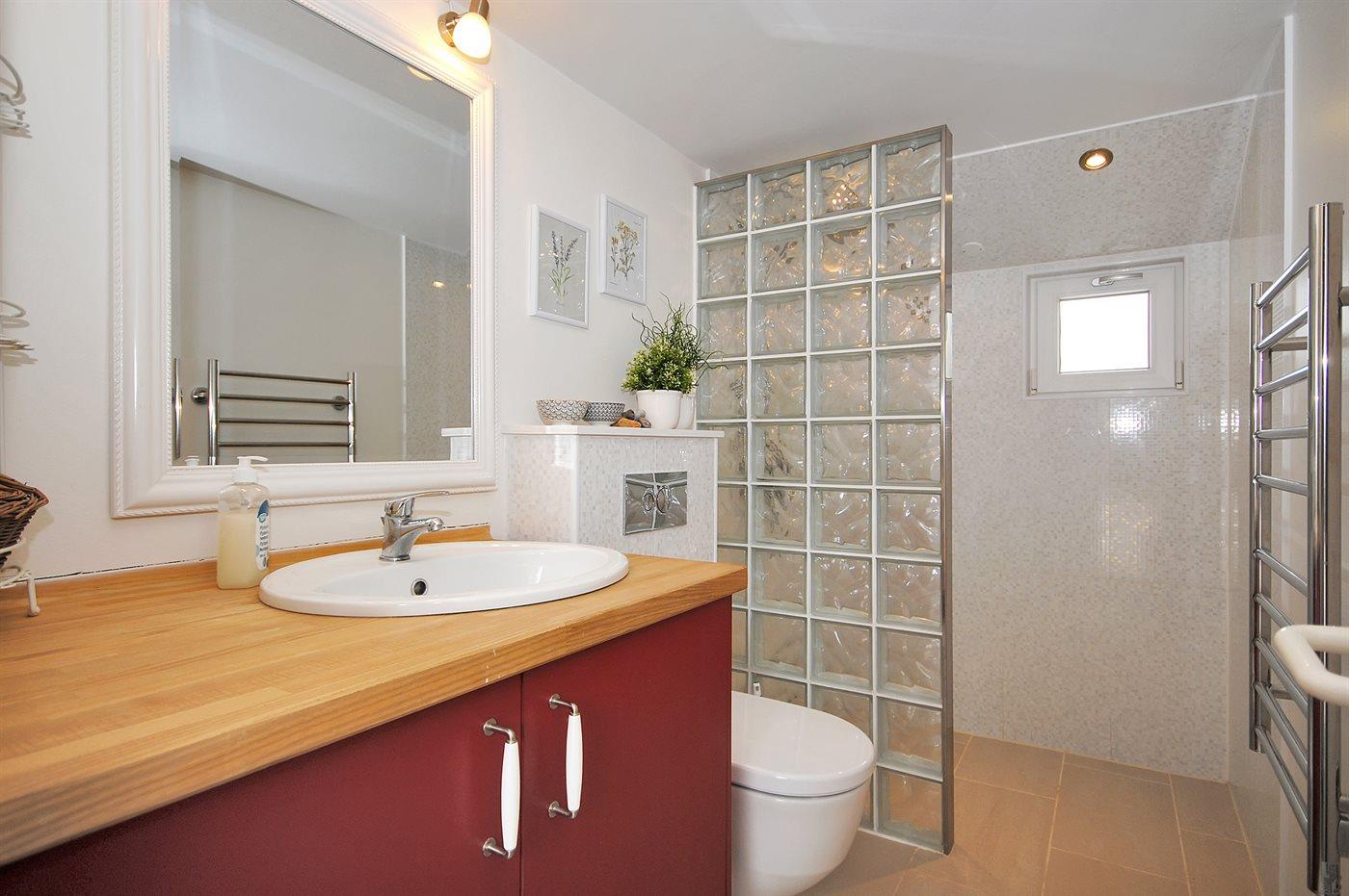 Es gibt 2 Badezimmer mit Duschnische und 2 Toiletten Es steht eine Sauna zur Verfügung in der Sie sich so richtig entspannen können.
