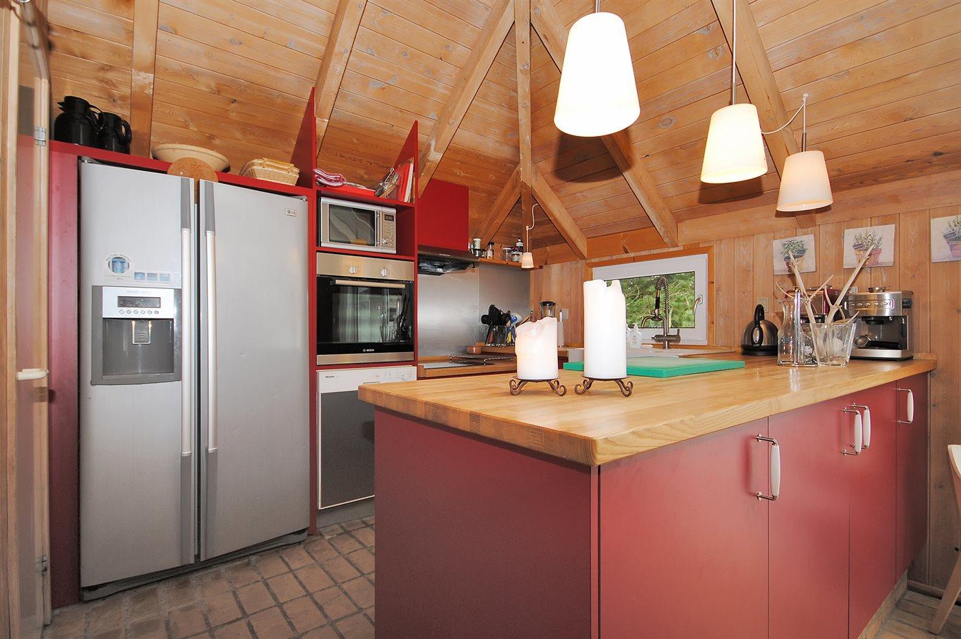 Die Küche ist mit amerikanischem Kühlschrank ausgestattet. Außerdem gibt es 4 Keramik-Kochfelder, Umluftofen, Mikrowelle sowie Geschirrspüler.