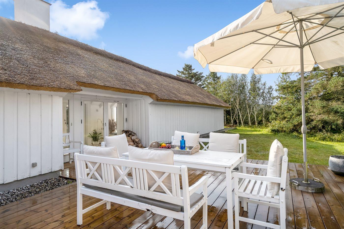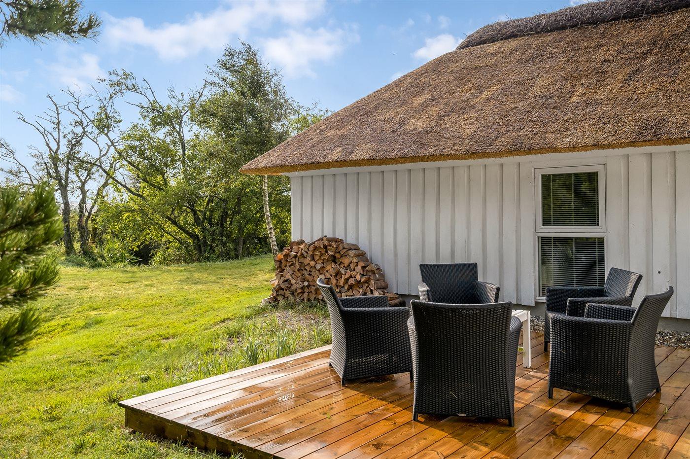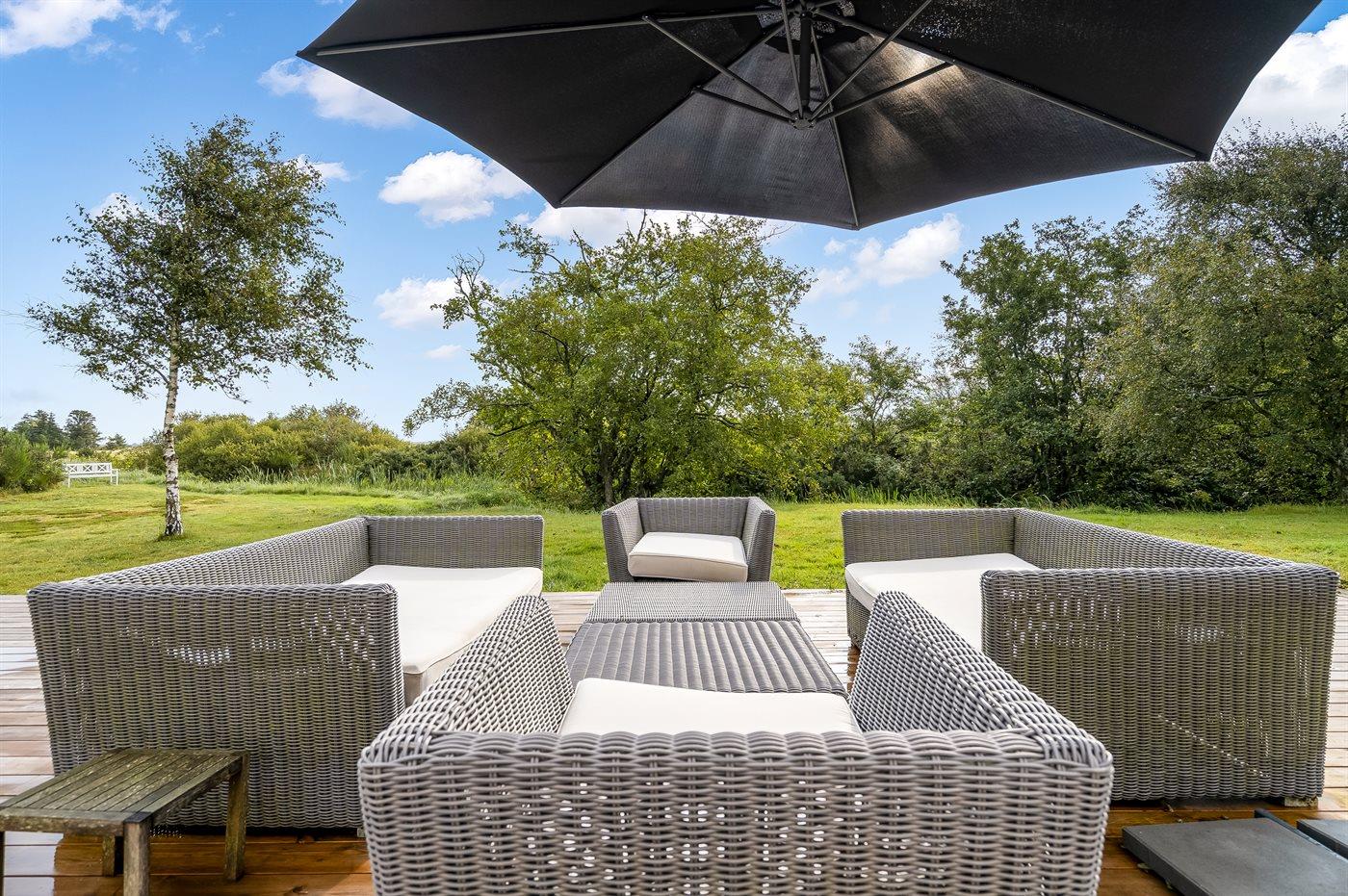 Zum Ferienhaus gehören zwei große Terrassen, die beide mit guten Gartenmöbeln ausgestattet sind. Selbstverständlich gibt es auch einen Grill, wenn man einen Grillabend in völlig ungestörter Umgebung genießen möchte. Kostenloser Zutritt zu einem Tennisplatz.