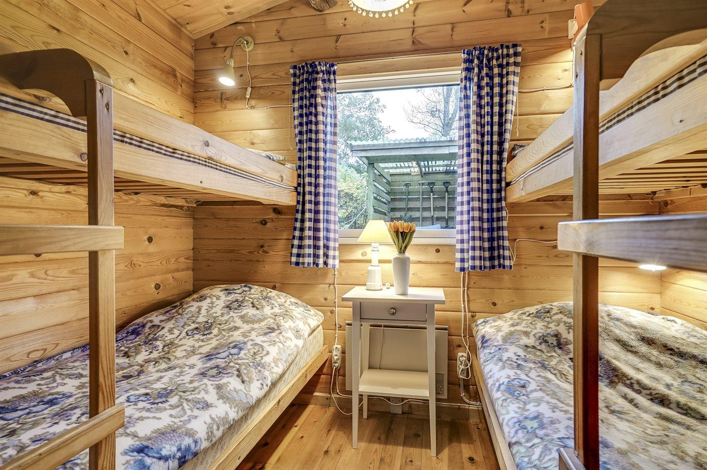 Die Schlafplätze verteilen sich auf 3 Schlafräume. 2 Schlafplätze in einem Doppelbett. 2 Schlafplätze in Einzelbetten. 2 Schlafplätze in einem Etagenbett.