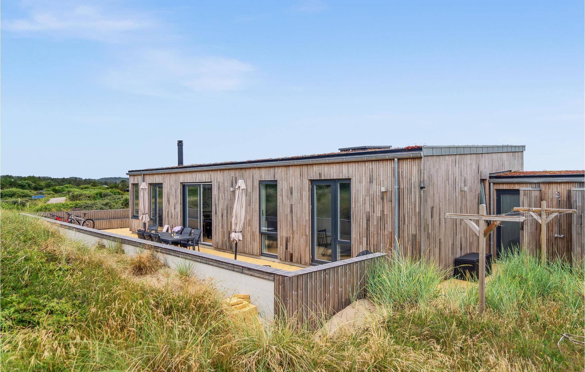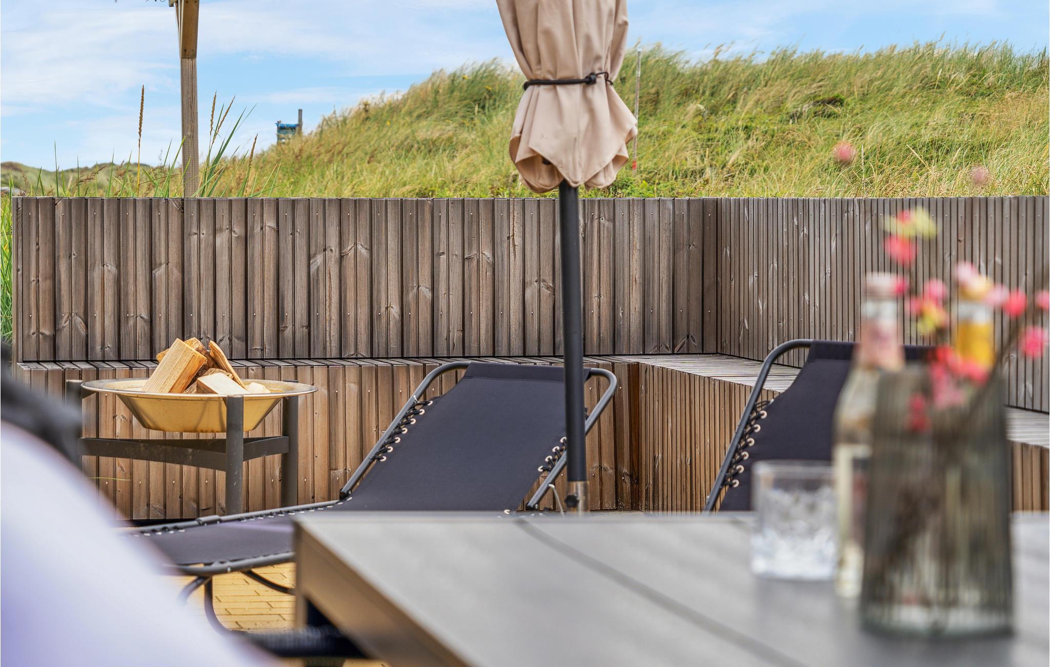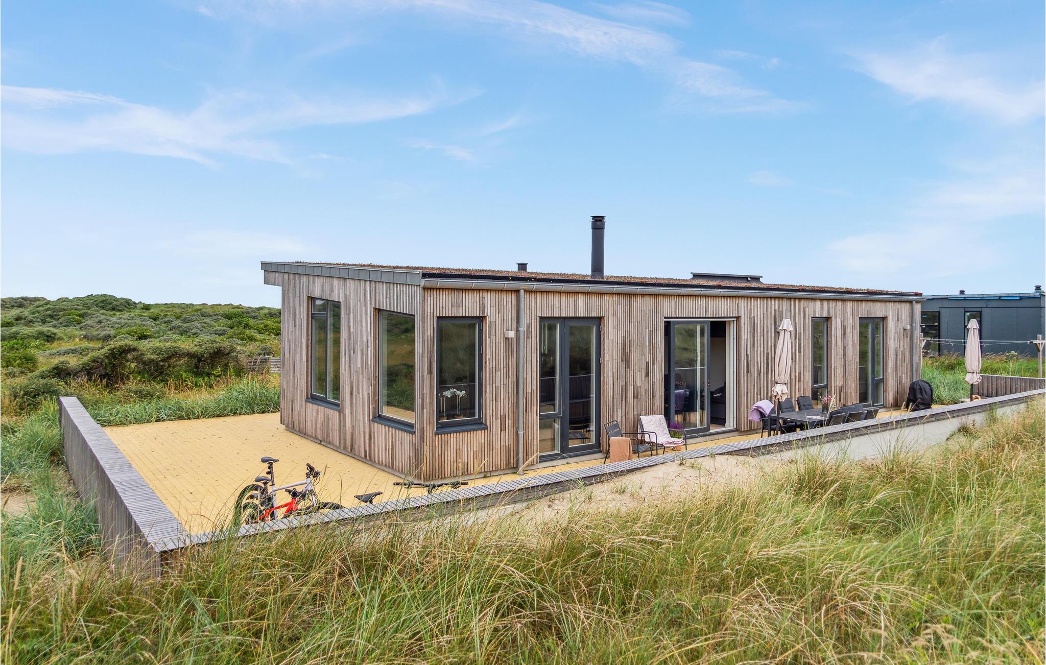 Betreten Sie Ihr modernes Ferienhaus, und fühlen Sie sich von Anfang an willkommen: Eine stilvolle Architektur und eine ansprechende Design-Linie machen die Zeit hier zu einer Wonne. Mit der Familie oder Freunden können Sie es sich hier bestens gemütlich machen, und eine schöne Auszeit vom Alltag verbringen. Auf den schönen Außenterrassen mit Blick auf die Landschaft werden Sie schöne gemeinsame Abende unter freiem Himmel verbringen, und die Nase in den frischen Wind halten können. Eine Außendusche steht zum entsanden nach einem der langen Strandspaziergänge oder Badeausflüge bereit.