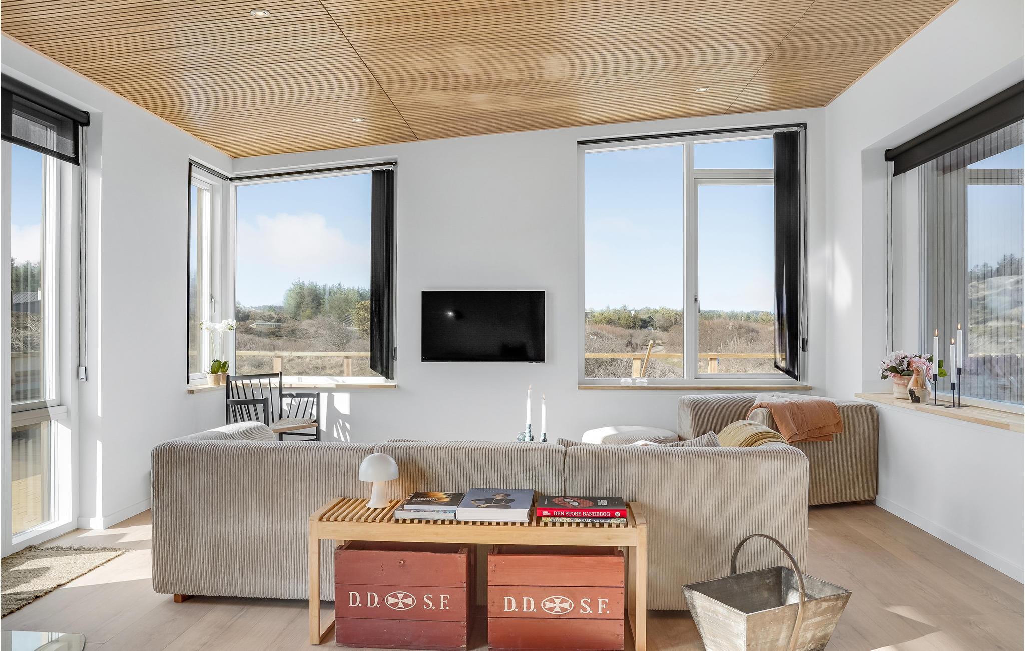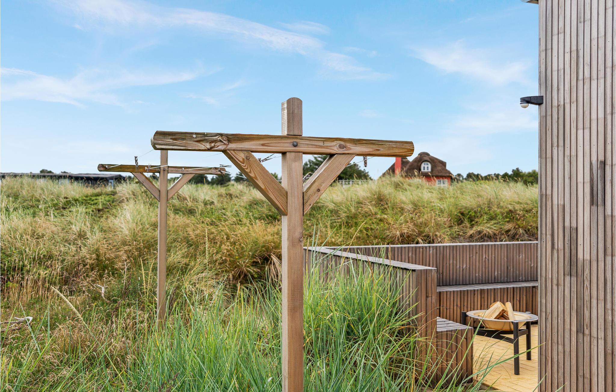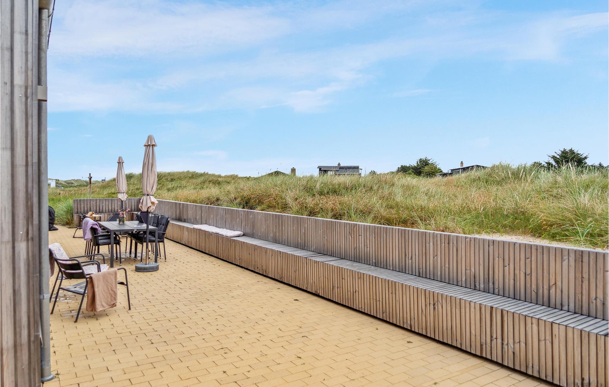 Betreten Sie Ihr modernes Ferienhaus, und fühlen Sie sich von Anfang an willkommen: Eine stilvolle Architektur und eine ansprechende Design-Linie machen die Zeit hier zu einer Wonne. Mit der Familie oder Freunden können Sie es sich hier bestens gemütlich machen, und eine schöne Auszeit vom Alltag verbringen. Auf den schönen Außenterrassen mit Blick auf die Landschaft werden Sie schöne gemeinsame Abende unter freiem Himmel verbringen, und die Nase in den frischen Wind halten können. Eine Außendusche steht zum entsanden nach einem der langen Strandspaziergänge oder Badeausflüge bereit.