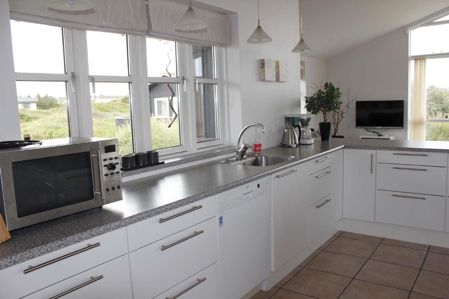 Nach vorne hat das Haus eine kleine Rasenfläche, und ist an den anderen Seiten von Hagebuttenbüschen, Strandhafer und Heidekraut umgeben. Es gibt wirklich nichts Beruhigenderes als sich ein schönes Plätzchen auf der das ganze Haus umgebenden Terrasse zu suchen, und einfach den Frieden des Meer - und Naturlebens einzuatmen. Auf der Terrassenseite, die dem Meer zugewandt ist, gibt es zwei Schaukeln - dort können die Kleinen spielen, während die übrige Familie Essen auf dem Grill macht.