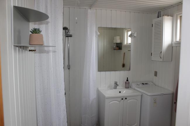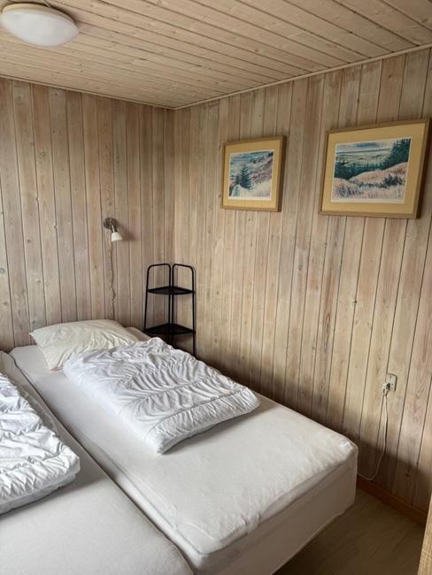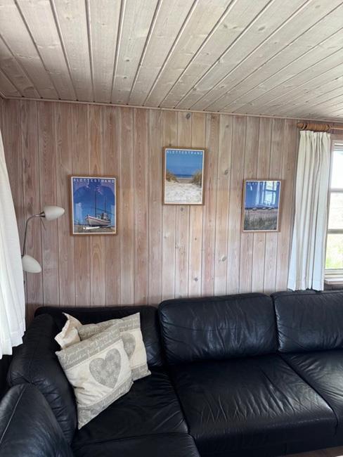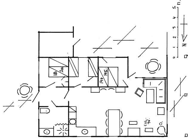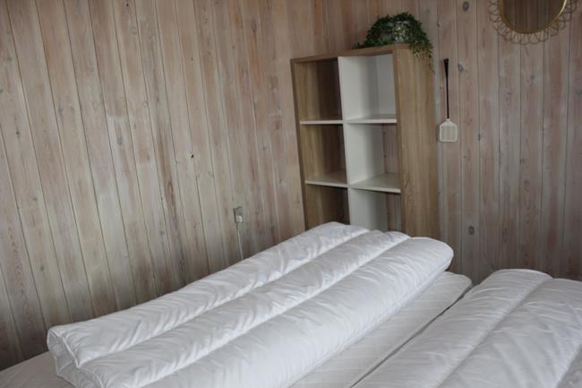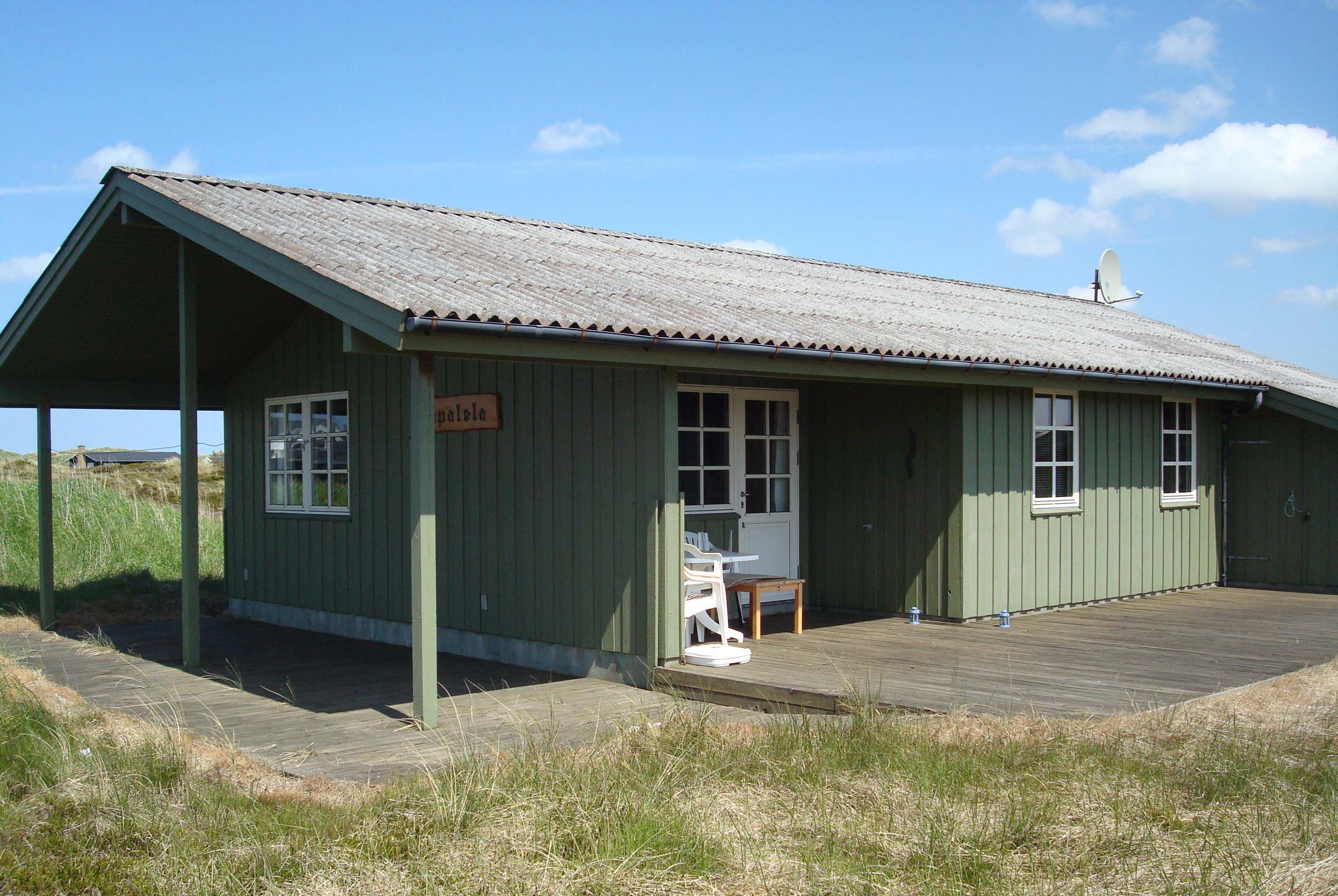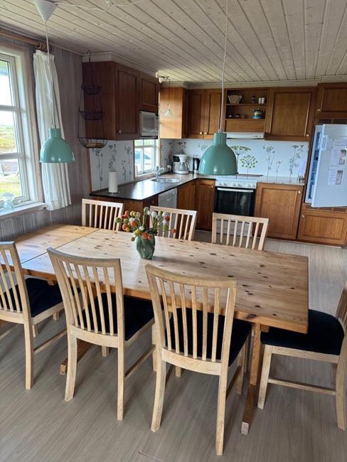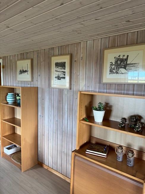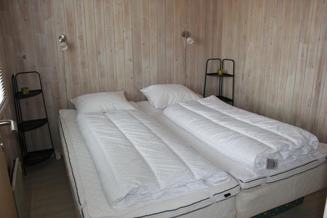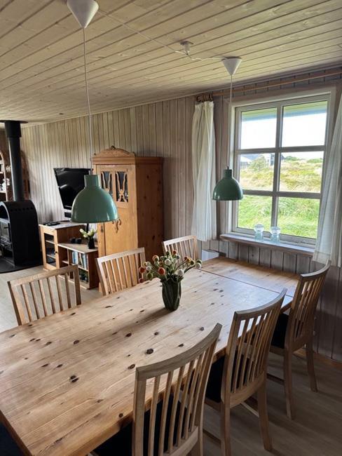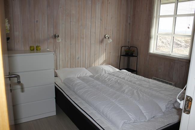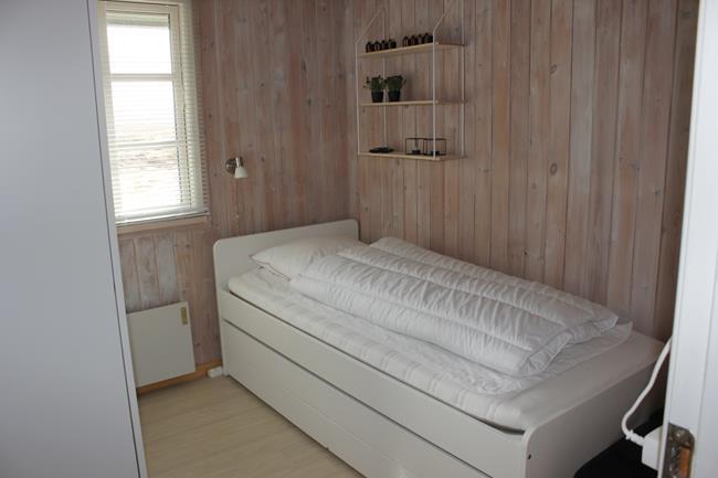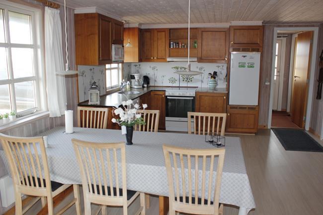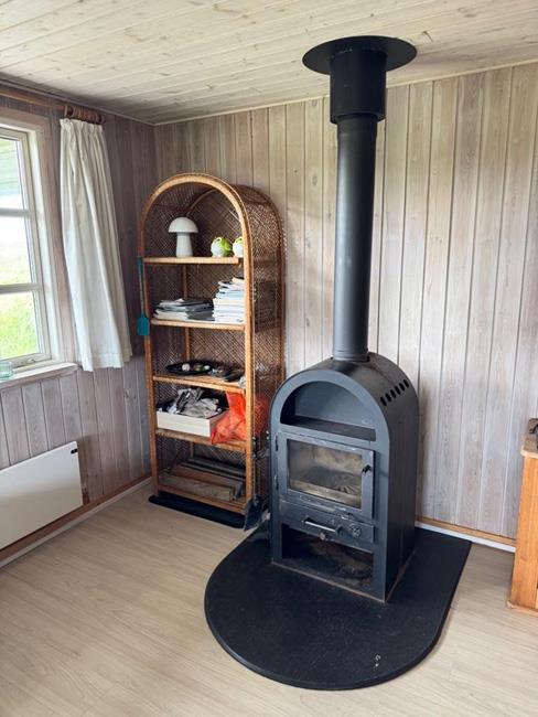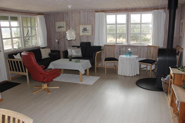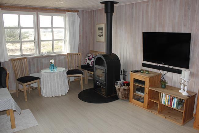 Das Haus hat 3 Schlafzimmer, zwei davon mit Doppelbetten und eines mit zwei Etagenbetten. Außerdem gibt es ein großes Badezimmer. Der Rest des Hauses besteht aus einem Küchen- und Wohnbereich mit einem großen Esstisch, an dem es Platz gibt für die ganze Familie. Hier findet man auch ein großes Ecksofa, auf dem man wohlig am Kamin sitzen oder fernsehen kann. Eine Besonderheit in diesem Raum ist eine Heimorgel, an der die ganze Familie beim gemeinsamen Singen begleitet werden kann, nachdem sie einen schönen Tag am Strand verbracht hat, der nur einen Steinwurf vom Haus entfernt liegt.