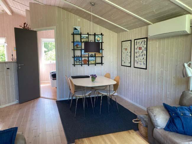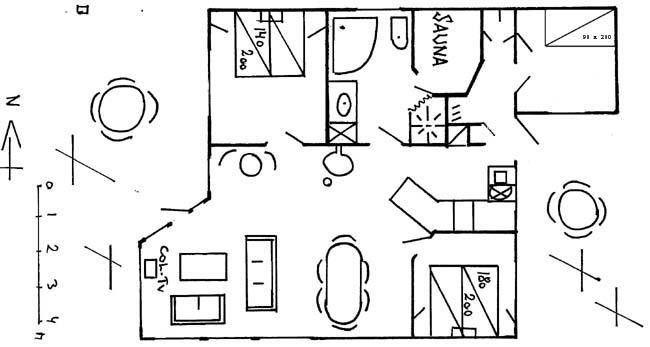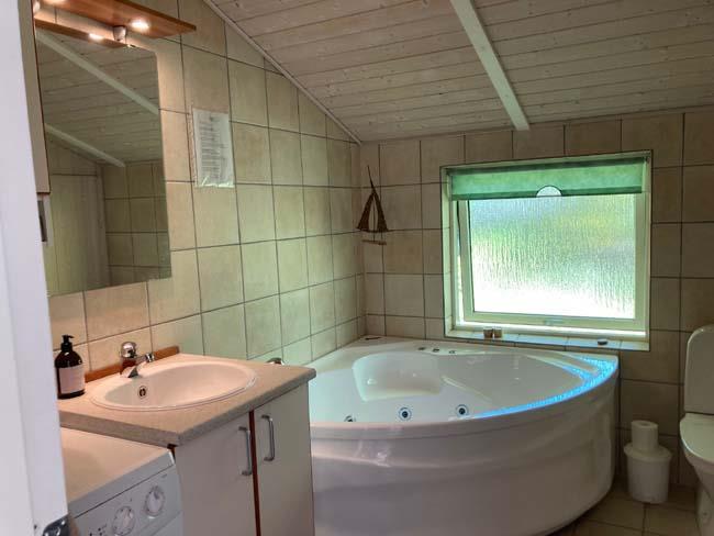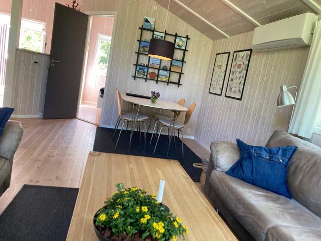 When you step into the house a large and light room with high celling will meet you. The house is on the inside covered with light wood and big windows, which makes the house nice and calm to be in. the house has three bedrooms, on with a bunk bed and the other two each with a double bed. Furthermore the house has a large bathroom that both have a shower bath, spa bath and a sauna. What a luxury it is to get home to the house after a day with a lot of activities, and then just relax with some good music and comfort.
