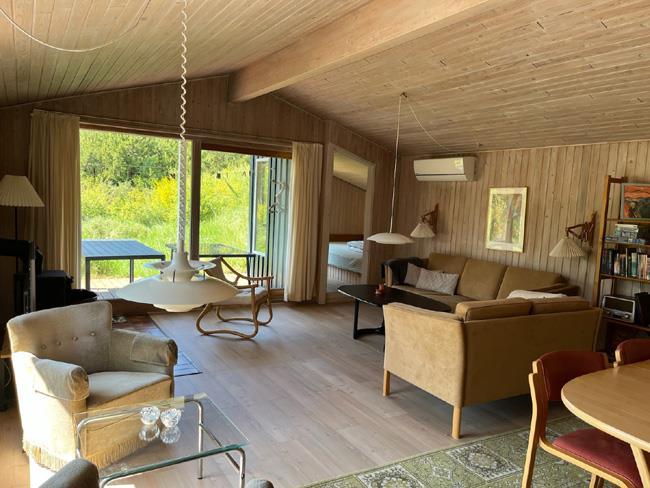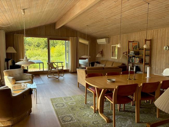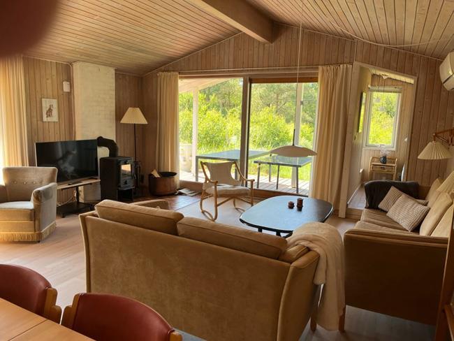 The previous mentioned living room has both a dining section and two smart sofas, from where you can enjoy the nature outside, watch TV, or enjoy the heat and fire from the gorgeous and unique wood burner.