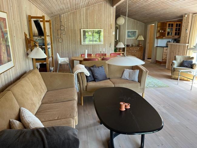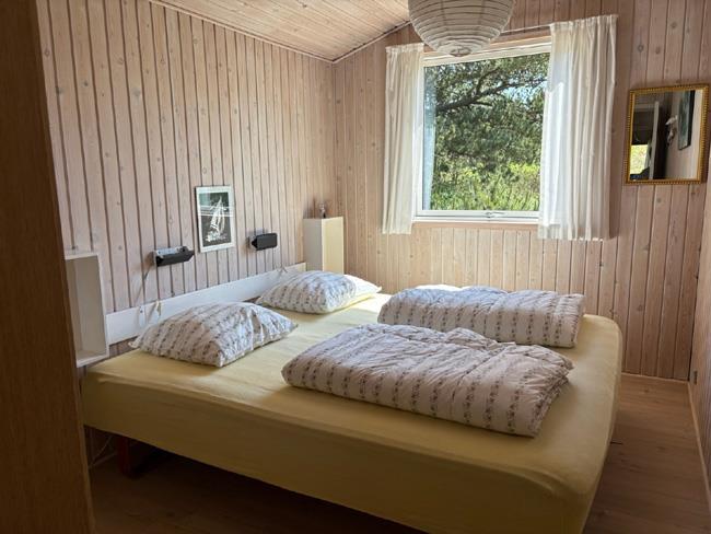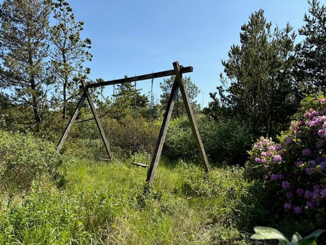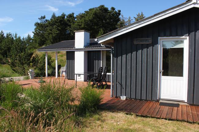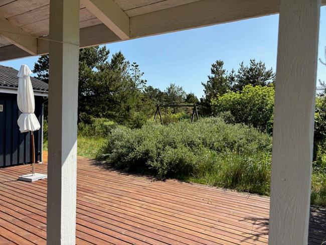 You are driving down to the beach, and turn to the right into a beautiful area with a mix of trees and dunes. It is in this area you will find the lovely holiday cottage called Tianca. The house is located on a fantastic ground surrounded by nature and close to the beach. Here it is not the noises from your neighbour you will hear, but the sound of grasshoppers and birds, which are having fun in the lyme grass and heather. On the north side of the house there is a dune, from where you will have a view to the Vesterhavet and the pretty sunset. Up here you can bring some blankets and enjoy a cup of something good. On the south side, the house has two doors, and from one of them a little path is going out at the dunes, where there are some swings, belonging to the house. There are two terraces, one at the front door with a little roof, and a big one, which cover the southwest corner of thee house. On the south side there is a lot of space and the west side is roofed.
