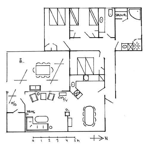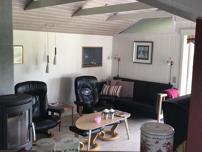 Smukt, hyggeligt og MEGET velholdt sommerhus med storslået udsigt over det kuperede landskab. Huset er bygget i U-form og yder således dejlig læ for vinden, dels når man sidder på den delvis overdækkede terrasse eller fremme i den åbne del. Fra den hyggelige stue, hvor der er trægulv, BRÆNDEOVN, TV m/parabol og 25 kanaler fra stofa. Der er såvel fra spiseafdelingen som sofaen en virkelig SMUK UDSIGT over grunden og de åbne vidder. I det øvrigt meget veludstyrede køkken er der bl.a. OPVASKEMASKINE, microovn, køleskab m/god frysekapacitet. Der er 2 store soveværelser, hvoraf 1 med db. seng (180x200), 1 med 3/4 seng (140x200) og et vær. med 2 overkøjer (70x200) samt en 3/4 seng. Huset har INTERNET, SAUNA, SPA VASKEMASKINE og bruser.- i særskilt rum er toilet og håndvask. - Gulvvarme i badeværelsene. Til terrassen hører: bord, 8 stole, 3 pos. stole, bænk, parasol og grill. - - ligesom der er tænkt på børnerne med SANDKASSE & GYNGER. Dette hus udlejes ikke ungdomsgrupper.