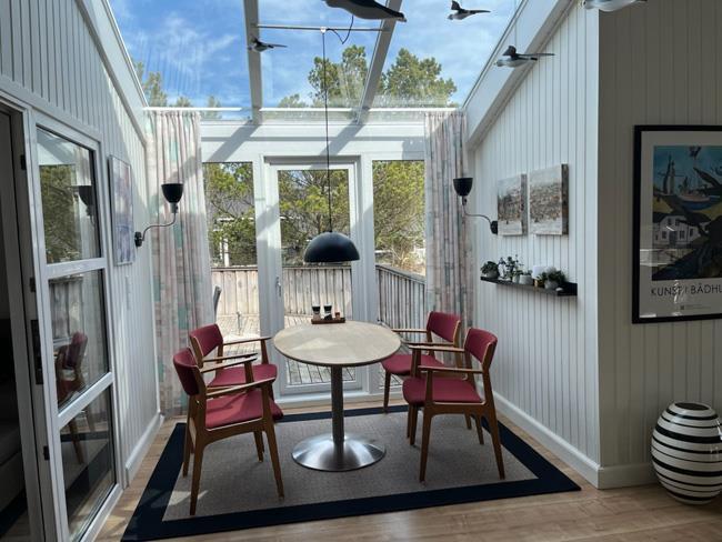 The house itself has four bedrooms, whereas two of them each has a double bed, the third a single bed and the last a three quarters bed and a single bed. All these bedrooms are designed as light nice rooms, so that you get the best conditions for a good night sleep. Furthermore, the house has two bathrooms, where one of them has the extra luxury of a sauna. The sauna is good to make use of, if you come back from a swim at the beach.