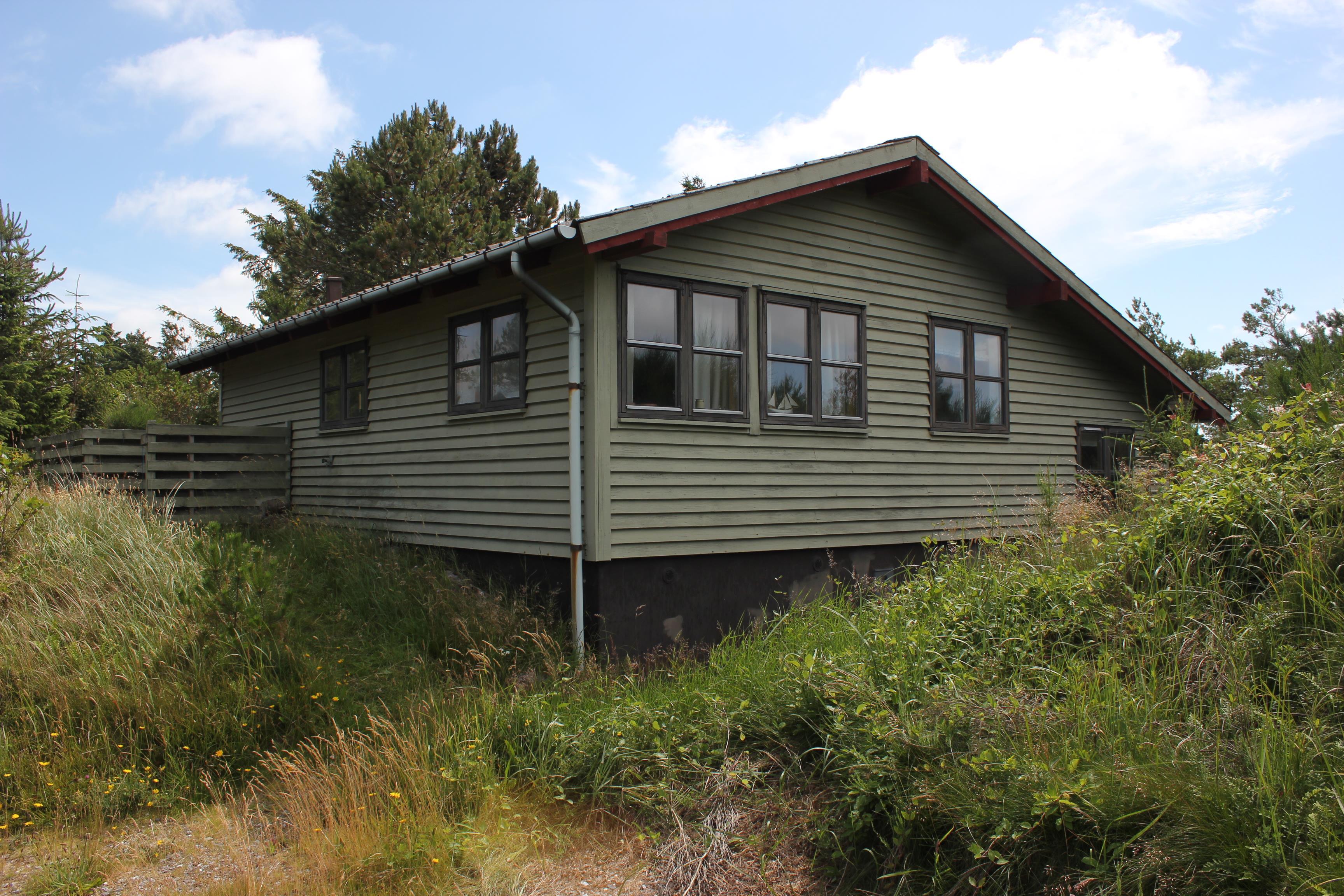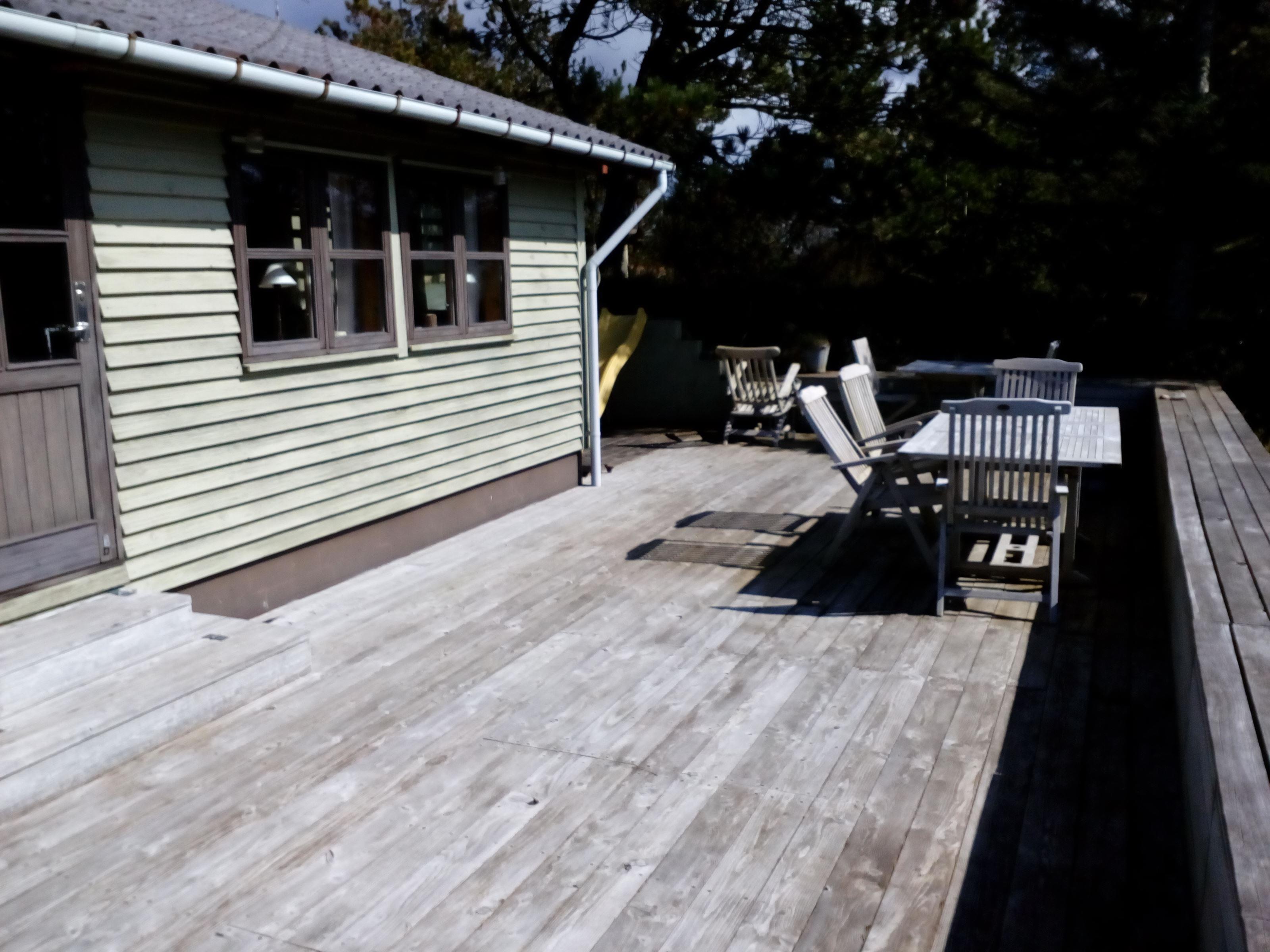 This holiday cottage is located in Slettestrand, which has a wonderful beach and a really beautiful forest to offer. The house is placed in a holiday cottage area with lyme grass, heather, moss and trees everywhere. Hvolby is the name of this lovely house, where you walk upwards a dune to get too. Here you step into the first terrace of the house, from where you have the view to the dunes that the ocean is behind. On this terrace it is convenient to enjoy the sunrise with a cup of coffee. The other and large terrace is placed with the view to fine Sandbjerggård, which is a lovely old hotel. This terrace is super to be at, because there both are space for the children to play at the slide, you can sunbath, you can enjoy the nature, and you can have a barbeque party with the whole family. At these terraces there are two fantastic sounds that you will hear constantly: Twittering from the birds and foaming from the ocean – lovely sounds, that helps you to find new energy into mind and body.