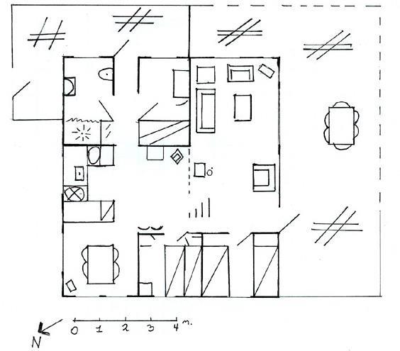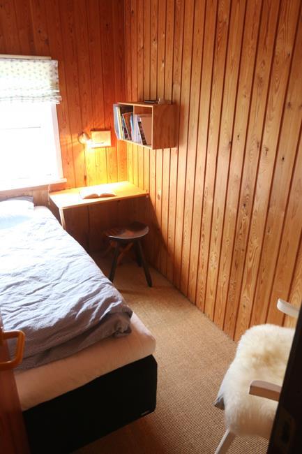 The house has fine furnishing with its warm soul and difference of level. The house has a good conversation kitchen, where there are room for the family to prepare the meals together. Here you also will find the sweet dining table with some beautiful old fashion chairs. How cosy and nice. This room has a wonderful view over the area. The room has high celling and has a funny loft bar, where the strong family members can practise bull-ups. To get into the living room you have to go down the stairs. Down here you find a very cosy living room, which will set the scene for some good hours with the family with games of cards and board games. As an extra good detail in the living room there is a wood burner that the whole family can get the warm from. In general the house has a lot of cosy corners, where you can enjoy a good book.