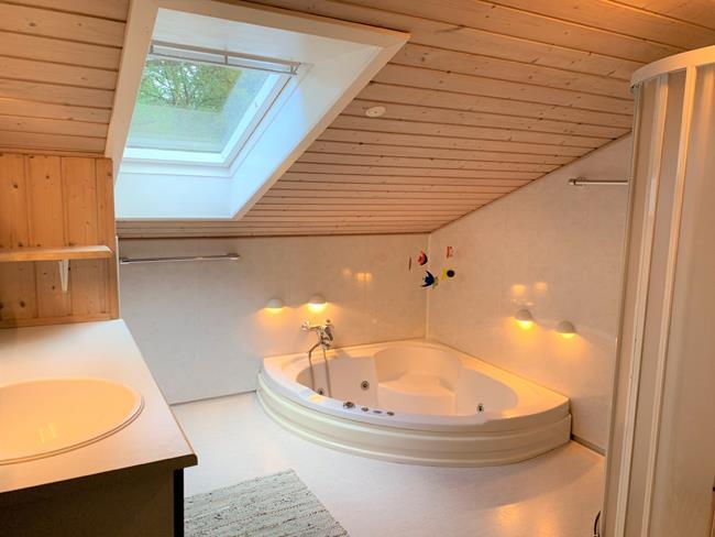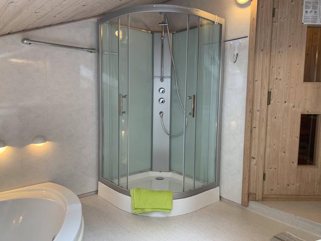 Es gibt einen Dachboden, ein schönes Badezimmer mit Waschmaschine und Zugang zur Sauna sowie eine separte Toilette mit Waschbecken.