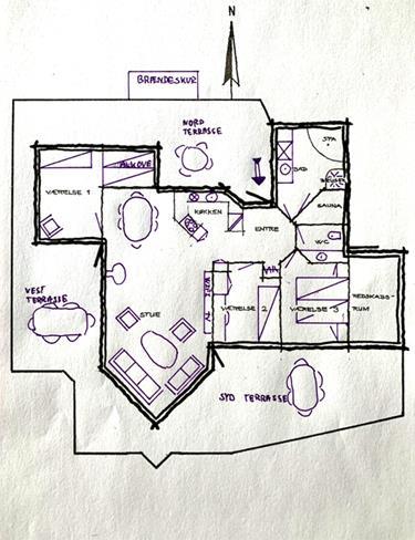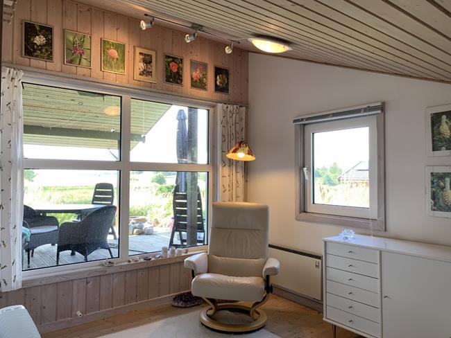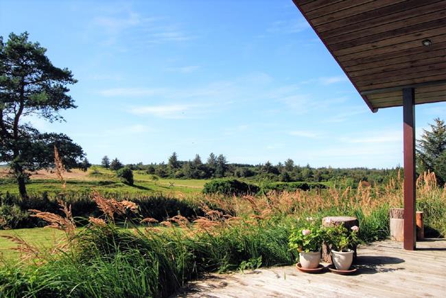 Dieses grosse Sommerhaus mit gut 100m2 lädt dazu ein die fantastische Umgebung zu erkunden. Sei es zu Fuss, bei Fahrrdtouren oder mit dem Auto. Das grösste ist jedoch, dass man im Haus, das Gefühl hat mitten in der Natur zu sein. Der grosse Raum zusammen mit der Küche hat 11 grosse Fester, die vom Dach bis zum Boden reichen sowie einen Zugang zu der Terrsasse im Süden und der im Westen, die überdacht ist. Daher kann man selbst bei stürmischen oder regen Wetter draussen oder von der Stube aus die fantastische Natur geniessen. Keine Nachbarhäuser oder anderen Hindernisse verstellen den Blick auf die traumhafte Natur der Svinkløv Plantage. Eine weitere Terrasse im Eingangsbereich ist nach Norden ausgerichtet. Insgesamt wird das Haus von ca 70m2 Holzterasse umgeben. Die Wärempumpe(Raumklimaanlge) oder ein Feuer im Kamin sorgen auch bei kalten Termperaturen für eine behagliche Wärme. Der Besuch der hauseingenen Sauna und der Whirrlpool sorgen ebenfalls für ein Gefühl von wohliger Wärme.