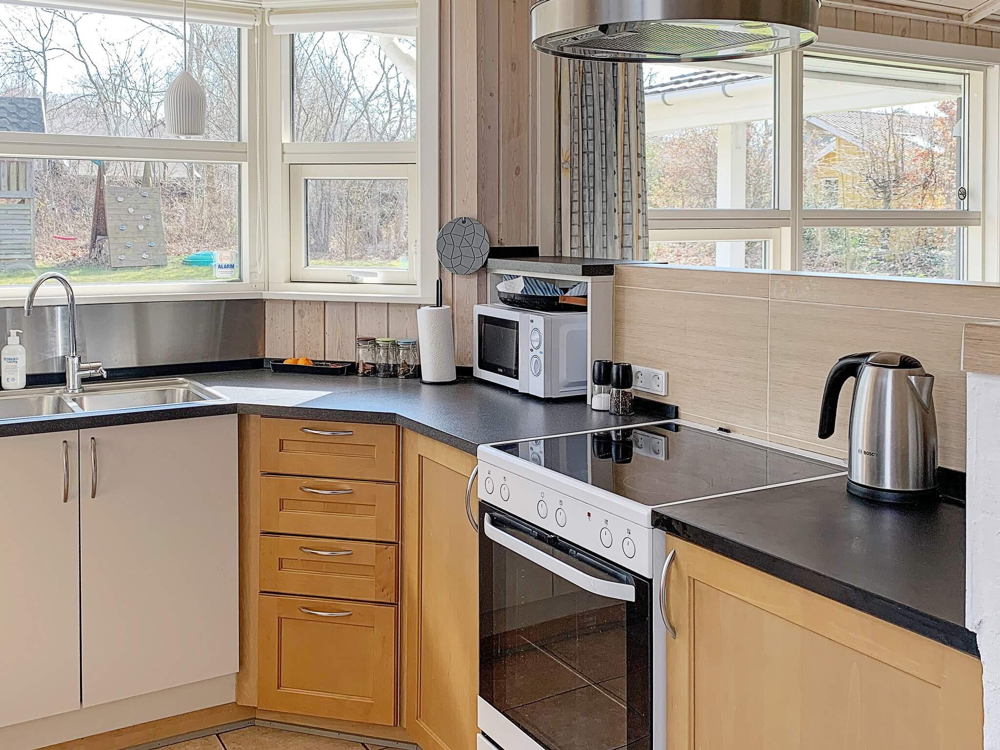 Im Haus helles Wohnzimmer mit Holzofen und energieeffizienter Luft-Luft-Wärmepumpe. TV mit dänischen Sendern sowie Chromecast zum Streamen eigener Anbieter per WLAN. Nebenan liegt der offene Küchen-/Essbereich für das Familienleben, gut ausgestattet mit u.a. Cerankochfeld, Mikrowelle und Geschirrspüler. Außerdem drei Schlafzimmer, zwei davon mit je einem 210 cm langen Doppelbett, sowie zwei Bäder mit Dusche/WC im Haus. Es gibt einen Kinderstuhl und ein Kinderbett im Haus. In einem Bad stehen Whirlpool und Sauna für Wellness bereit. Es gibt außerdem Waschmaschine und Wäschetrockner sowie angenehme Fußbodenheizung in den Bädern.