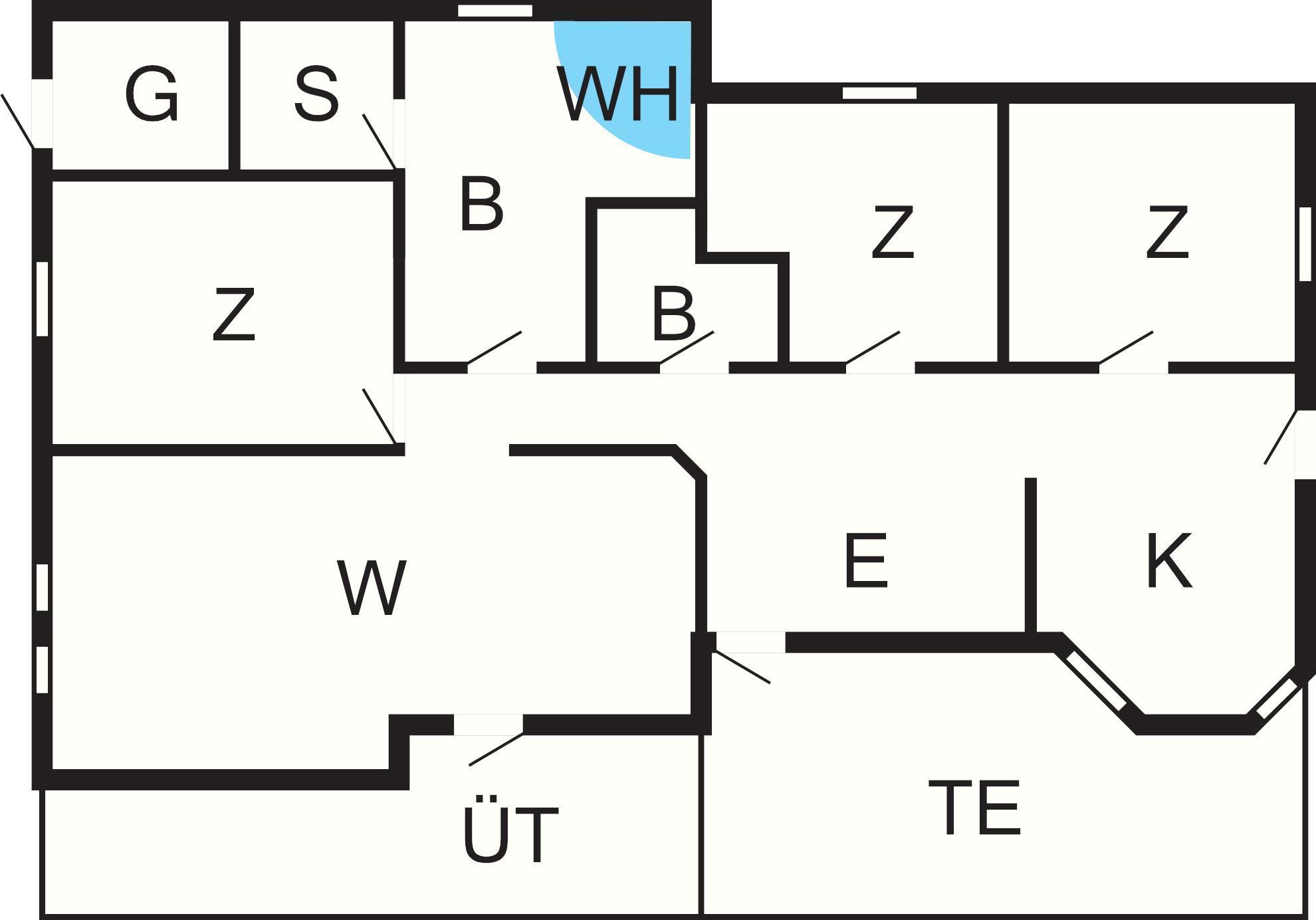 Bad: WC, Waschb., Dusche, Fußbodenheiz.