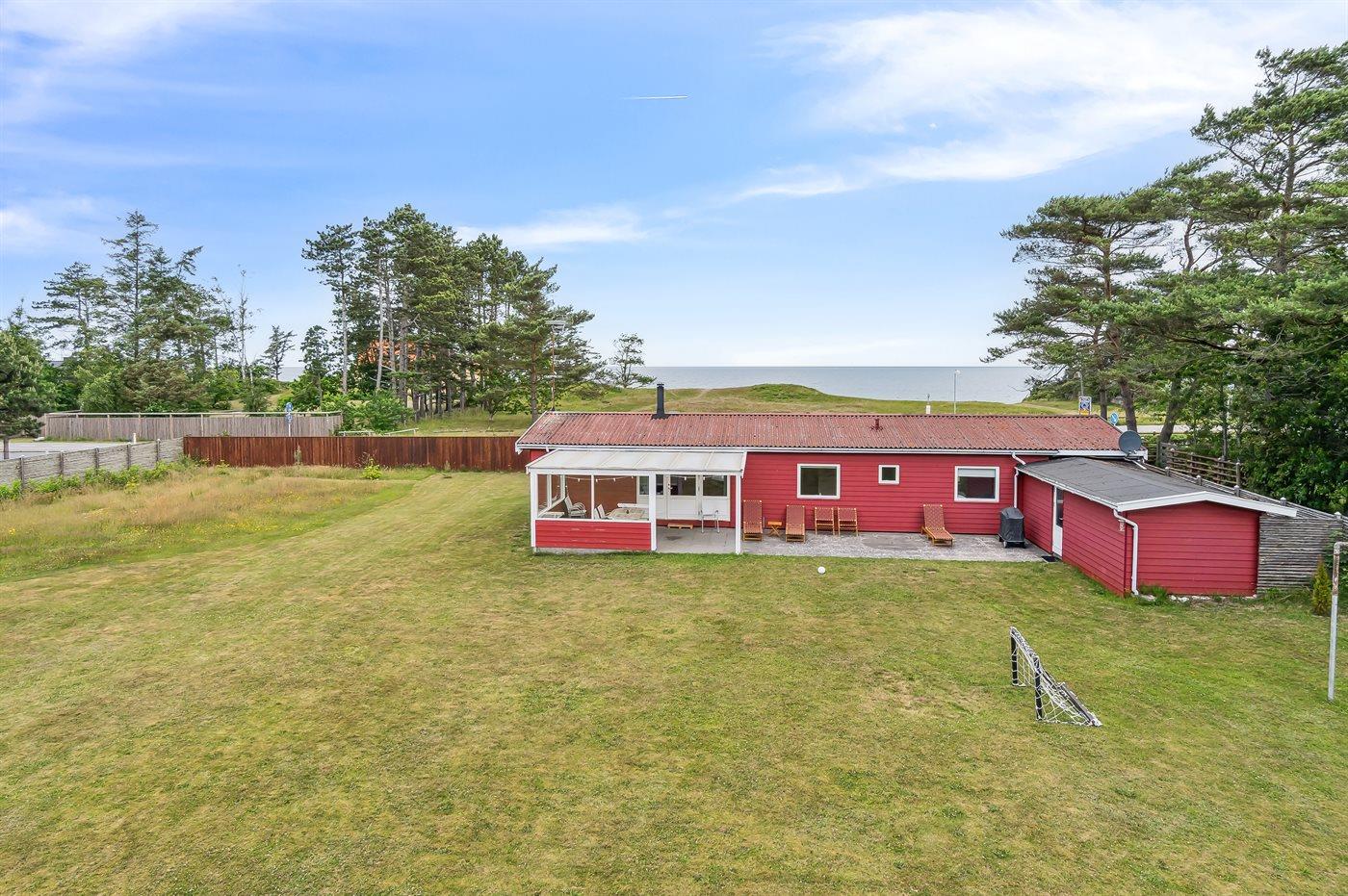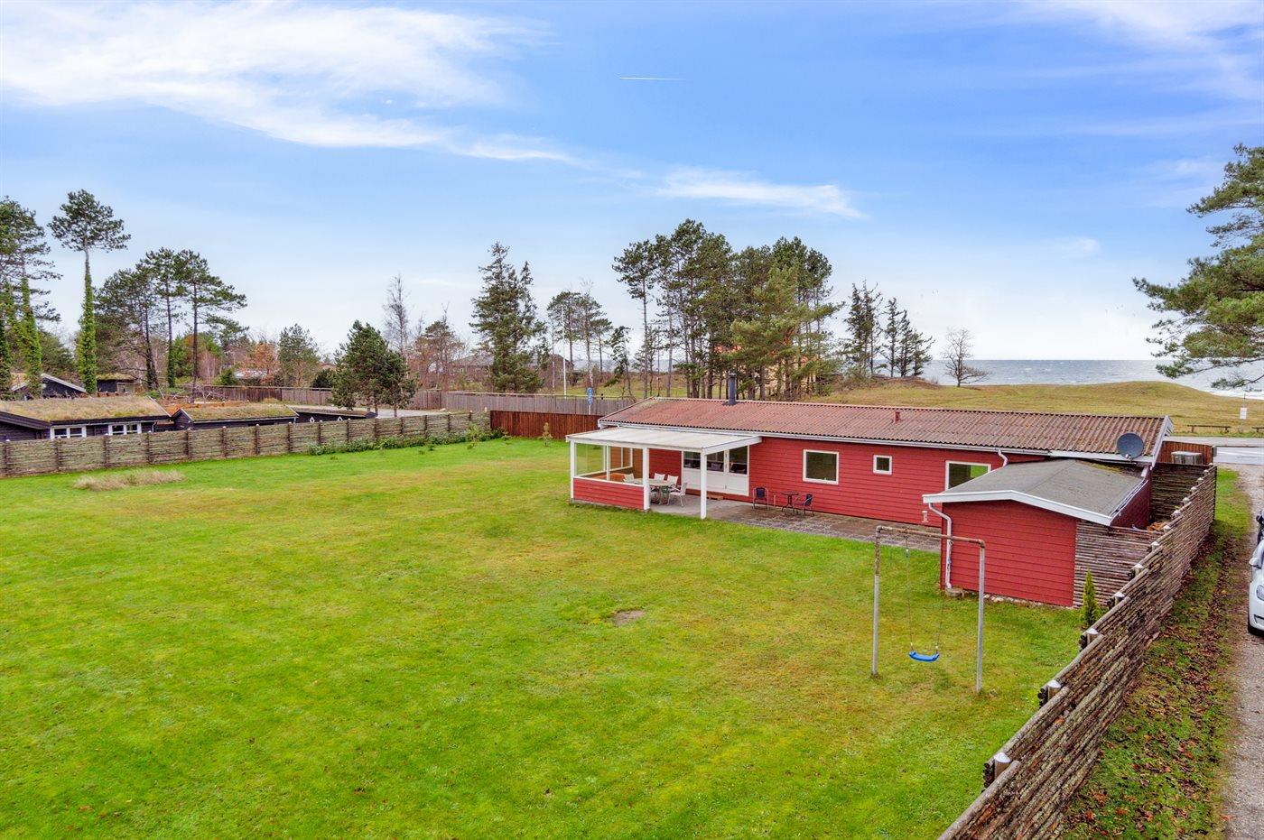 Die Ferienunterkunft liegt auf einem 1875 m² großen Gartengrundstück. Die Entfernung zum Meer beträgt 100 m. Die nächste Einkaufsmöglichkeit liegt 1000 m entfernt. Es steht ein offenes Terrassenareal zur Verfügung. Außerdem gibt es überdachte Terrasse. Schaukel. Trampolin. Fußballtor.Lagerfeuerstelle. Es steht ein Grill zur Verfügung. Parkplatz auf dem Grundstück.